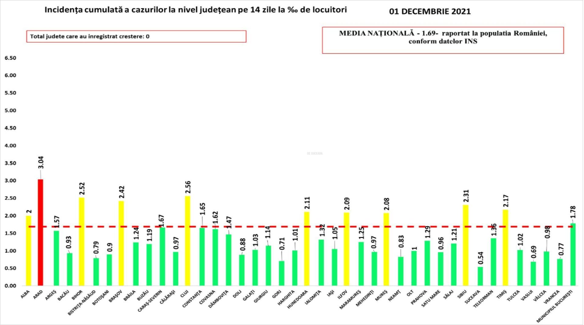 Numărul de cazuri noi de infectare cu SARS-Cov-2 în județul Suceava, înregistrat în ziua de 1 Decembrie a.c., a fost de 22 de persoane, din 550 de persoane testate. Incidența la nivelul județului este de 0,54 la mie, cu 377 de cazuri active.