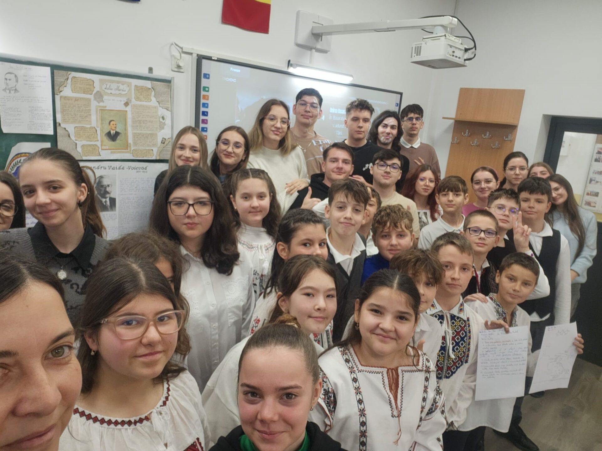Activitatea dedicată înțelegerii procesului de formare a statului național unitar român a adus împreună elevi ai clasei a XII-a B și ai clasei a V-a C. Elevii de liceu au prezentat contextul istoric al anului 1918: destrămarea marilor imperii, afirmarea dreptului la autodeterminare, dar și rolul decisiv al românilor din Basarabia, Bucovina și Transilvania.