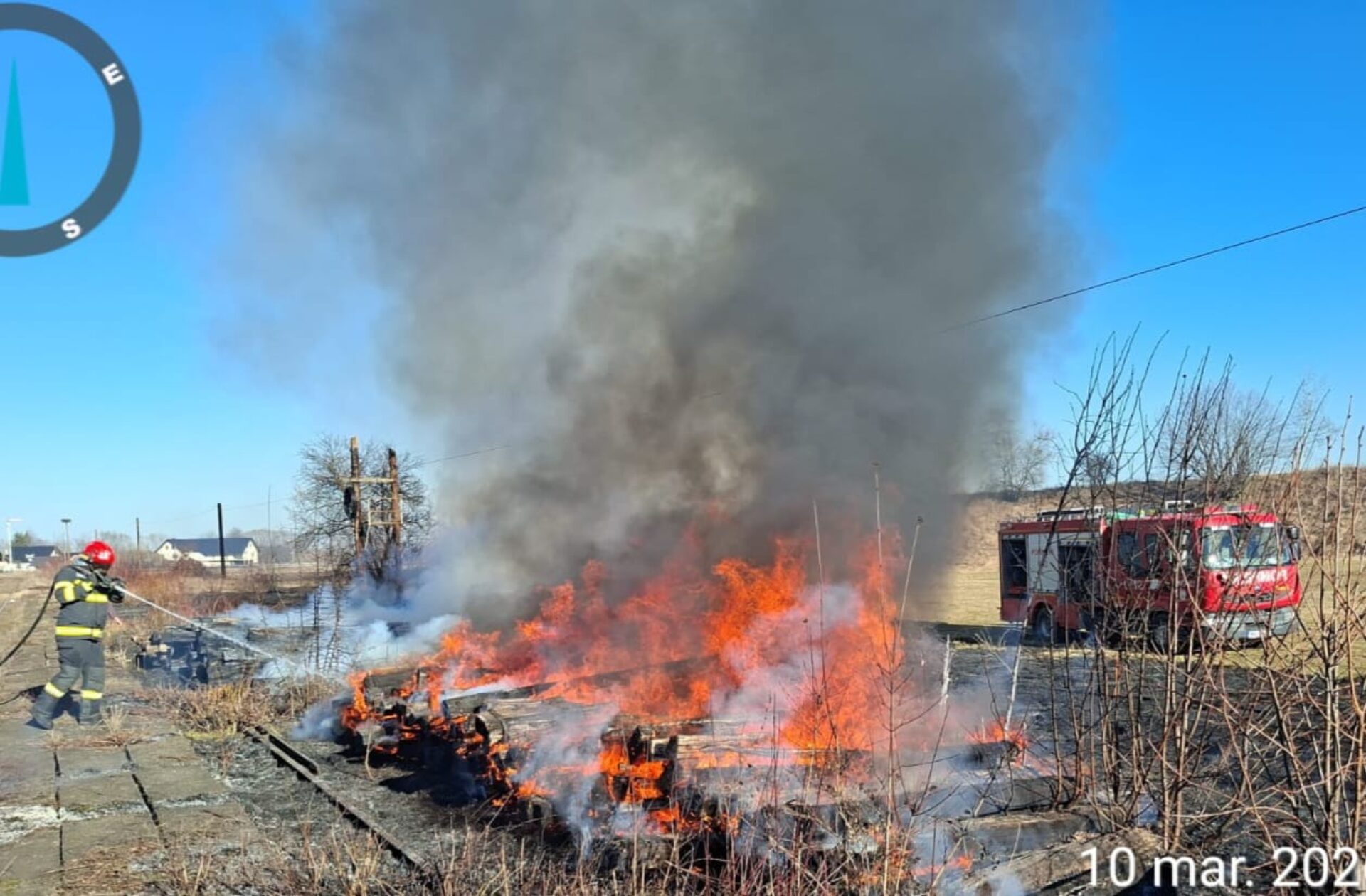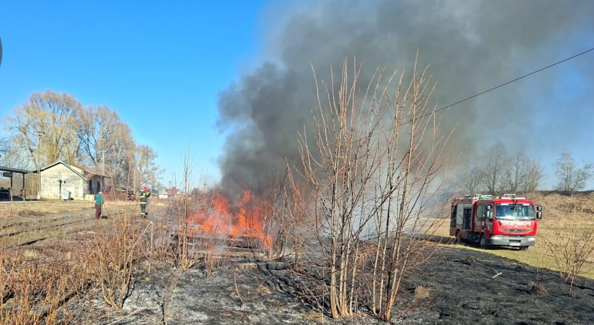 De asemenea, în satul Gura Putnei, comuna Putna, flăcările au cuprins vegetație uscată și traverse de cale ferată scoase din uz, depozitate pe o linie ferată dezafectată.