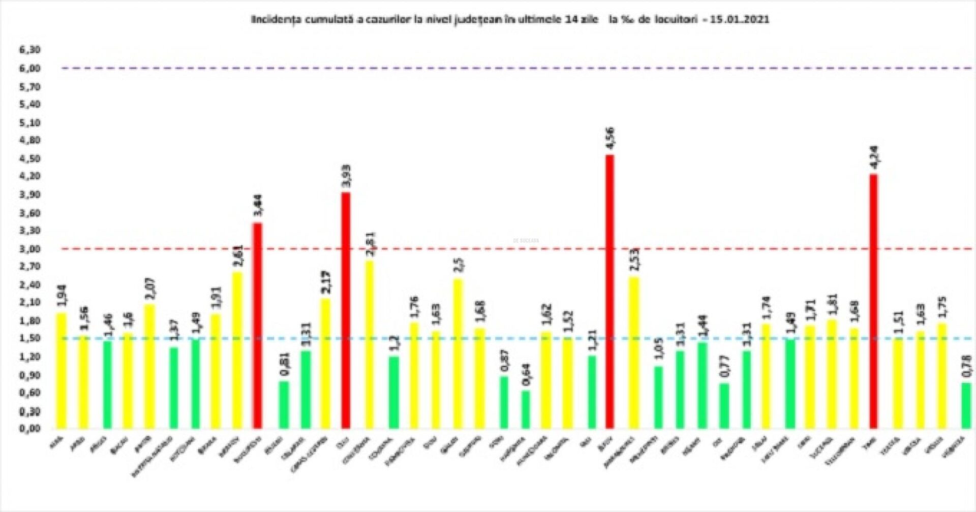 Situația epidemiologică în județul Suceava devine îngrijorătoare. Conform Prefecturii Suceava, în ultimele 24 de ore au fost testate 1.502 persoane în județ și au fost identificate 184 de cazuri noi de infectare cu SARS-CoV2 și 65 de pacienți reconfirmați pozitiv la retestare. Incidența cazurilor pozitive a ajuns la 1,81 la mie, de la 1,63 la mie în ziua precedentă. Cu 184 de cazuri noi, județul Suceava a urcat pe locul IV la nivel național, după București, unde vineri au fost înregistrate 469 de cazuri noi, Cluj – 294 și Timiș – 259 de cazuri noi.