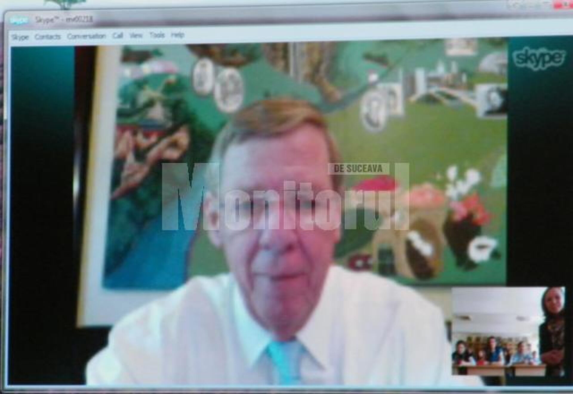 20 de elevi de la Școala Nr.1 din Suceava, împreună cu câțiva profesori și directoarea școlii, Tamara Brutaru, s-au întâlnit online cu un senator american. Întâlnirea a avut loc prin programul Skype, iar evenimentul a fost posibil prin intermediul voluntarului Corpului Păcii al S.U.A., Melissa Royer, care în prezent activează ca profesor de limba engleză la această școală.