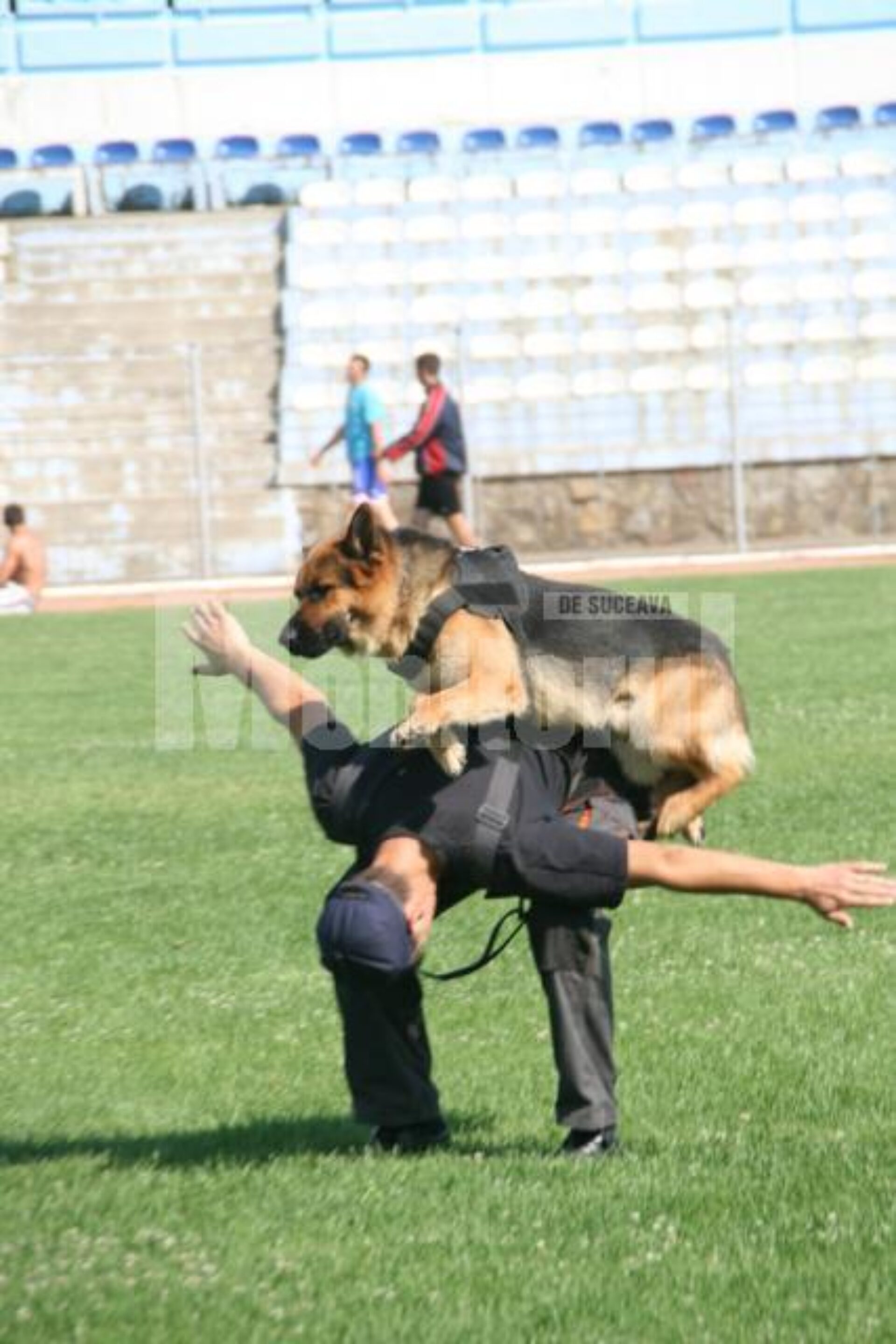 Zilele trecute, pe stadionul Areni, am nimerit exact în mijlocul antrenamentelor a opt dintre câinii polițiști.