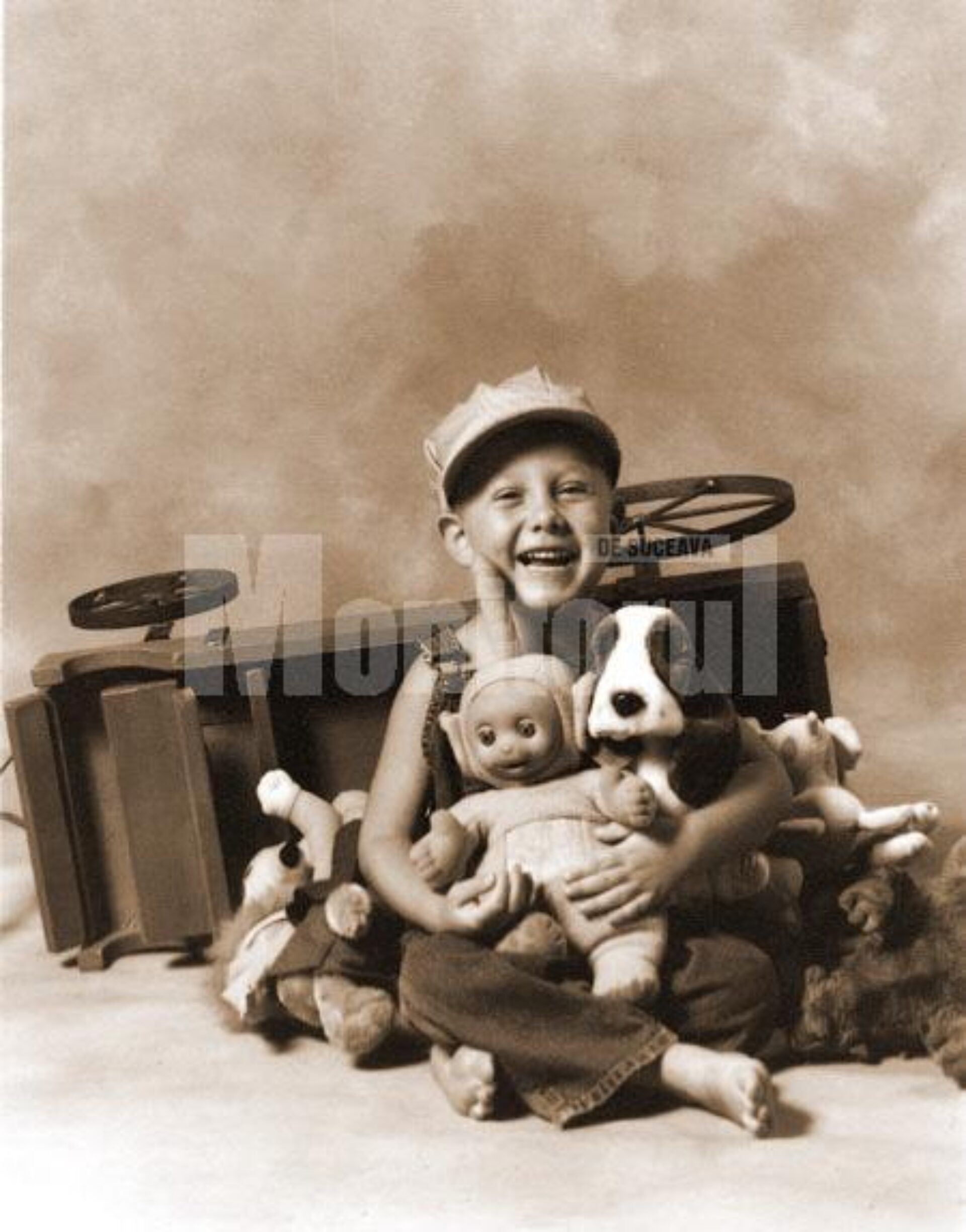 „Jucăriile din rafturi sînt, de obicei, aranjate unele lîngă altele și copilul, fremătînd de curiozitate și candidă uimire, caută să le descopere cu degetul arătător: «Aia ce e? Broscuțele cîntă? Dar mașinuța are cheiță? Vreau un tractor…». Gestionara stă înfundată în sine, pufăiește dintr-o țigară, privește undeva în depărtare și răspunde mecanic, la intervale fixe: «Baloane de culoarea aceea nu mai avem. Gîscuța e stricată. Tractorul costă 15 lei. Tu, obraznicule, stai la rînd! Așteaptă!». Cam la a treia cerere a micului cumpărător, gestionara începe a-i înșira jucăriile pe tejghea cu furia aruncătorului de suliță căruia nu i-au izbutit primele două încercări. Copilul nu e prea hotărît pe ce să dea banii. Vrea să vadă și pisicuța, și broscuța, și cățelușul, și trompeta…Gestionara se irită treptat, pufnește, se enervează, dă fum de țigară pe nas și deodată izbucnește furtunos: «Puștiule, eu n-am vreme să pierd cu tine! Iei ceva sau nu, că, uite, se apropie ora închiderii!». Supărat, copilul se retrage de lîngă tejghea. Se îndreaptă spre ieșire. Pune mîna la ochi. Pe stradă el se jeluiește cuiva: Tanti aceea n-a vrut să-mi vîndă o jucărie!”.