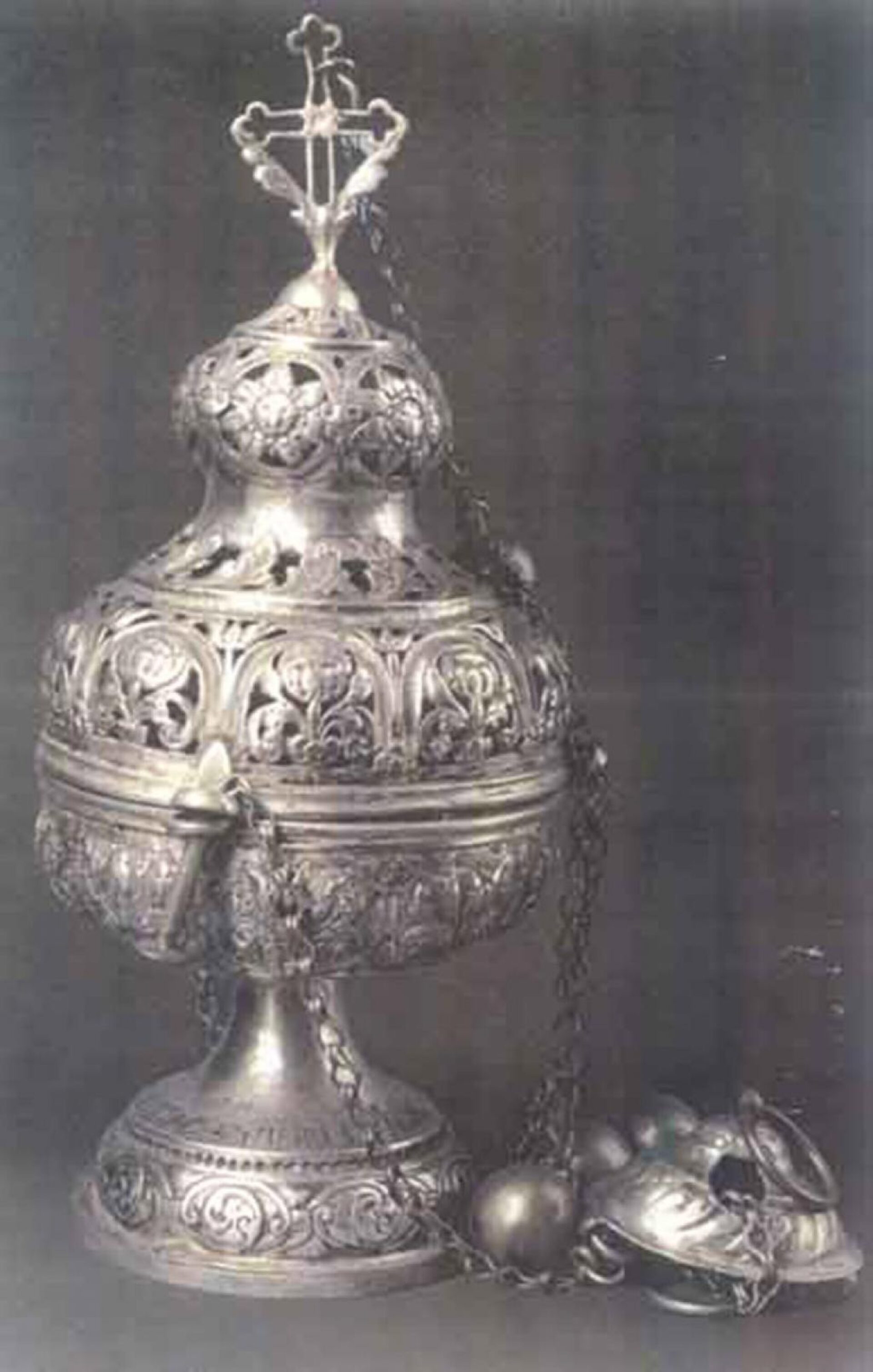 „La exposițiunea de antichități din Viena, Mitropolia Bucovinei a expus 41 de obiecte, între cari acelea cari au provocat admirațiunea visitatorilor prin vechimea și măestria lor sunt următoarele: O cădelniță de argint aurită, în greutate de 4 chlg., din mănăstirea Putna, dăruită de Ștefan cel Mare la 1470. Un aer lung de patru metri și lat de doi și jumătate, tot din Putna, cusut cu fir de aur și de argint, dăruit de Bogdan fiiul lui Ștefan cel Mare la 1490. Un acoperemânt de mormânt representând pe Maria, a doua soție a lui Ștefan cel Mare, cu data 1477. O cruce de lemn sculptată cu multă măestrie și ferecată cu argint, dăruită de Ioan Părcălabu de Orheiu la 1566 din mănăstirea Dragomirna. O evanghelie cu foile de pergament, în slavonă, cu scoarțele de argint poleite, dată de Ștefan cel Mare fără dată, alt aer de mărimea celui de mai sus, cusut în aur și argint, dăruit de Ieremia Movilă la 1606 din mănăstirea Sucevița”.