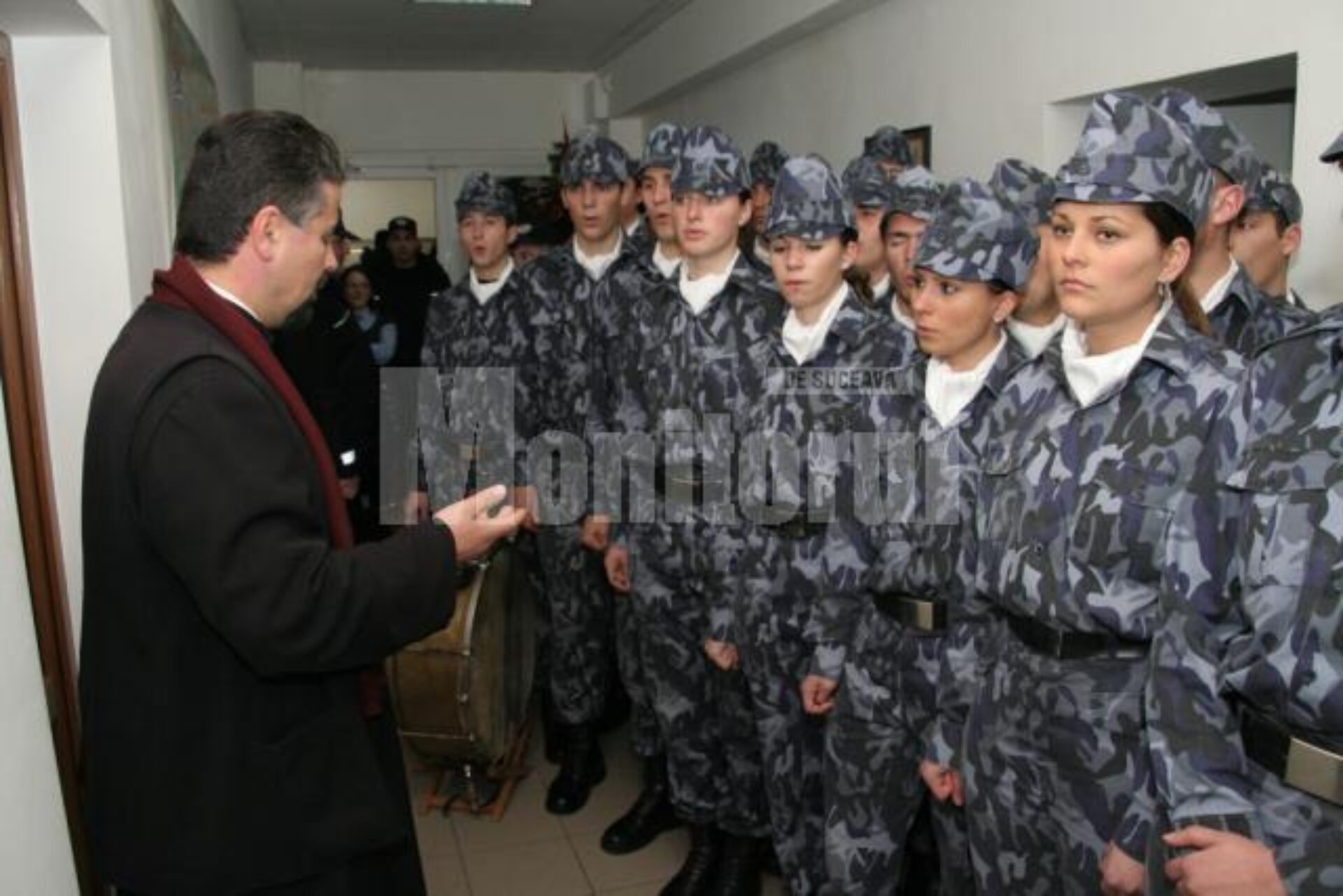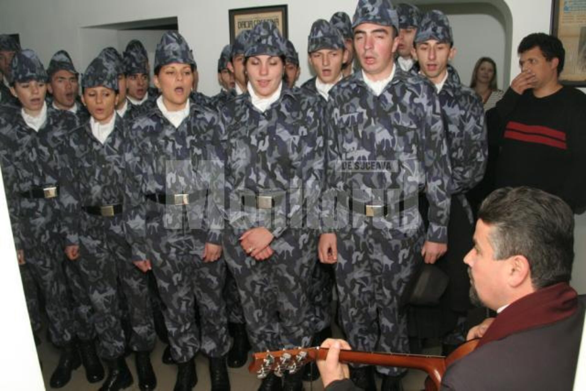 30 de elevi care se pregătesc să devină jandarmi au colindat ieri redacția ziarului Monitorul de Suceava. Cei 25 de băieți și cele cinci fete din corul Școlii Militare de Subofițeri Jandarmi din Fălticeni au interpretat mai multe colinde tradiționale, coordonați de dirijorul lor, preotul militar Cătălin Simion și de solistul vocal al corului, plutonierul Dumitru Corduș.
