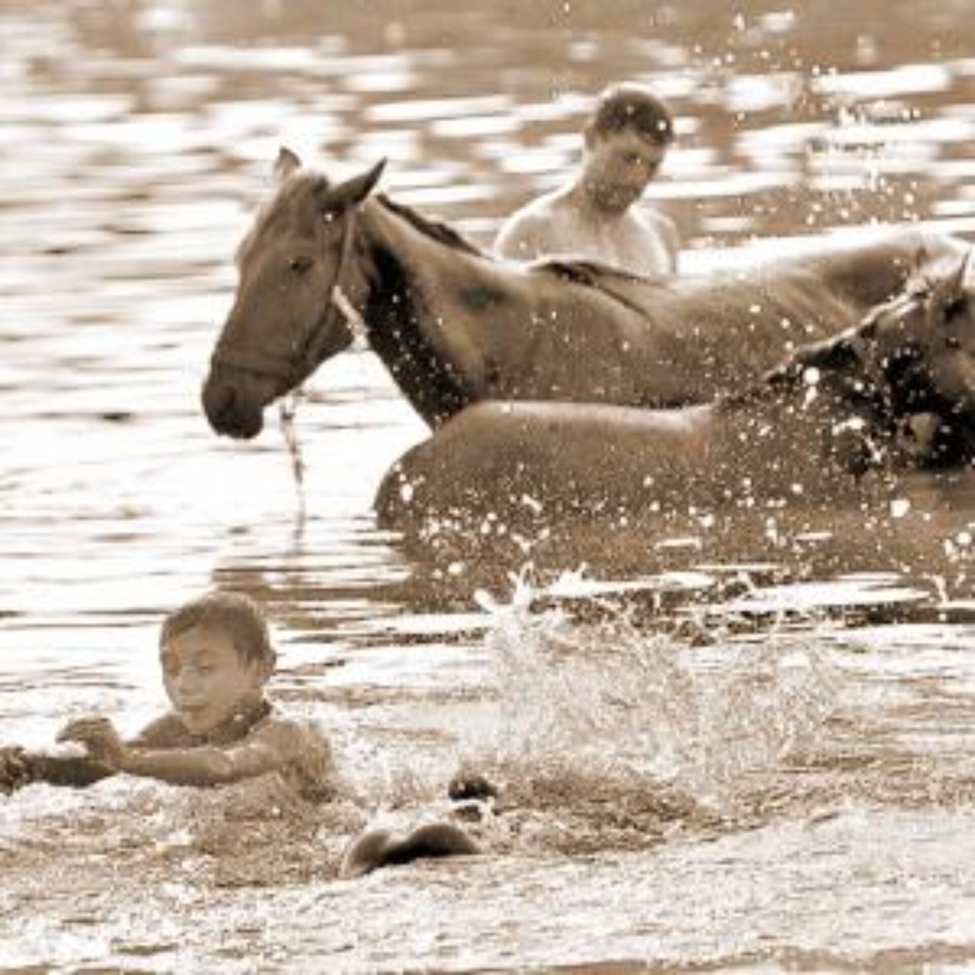 „În sfârșit, am ajuns și la plajă. Răchitele, stufărișul și urzicile ne-au permis să ne dezbrăcăm, înlocuind destul de bine niște cabine. După ce fiecare a făcut câte o prașilă manuală, ne-am întins pledurile și ne-am pregătit de baie. Apa era plină de oameni care se bălăceau cu prudență să nu care cumva să urnească vreun bolovan, sau să rupă un buștean. Alături se scăldau un cîine și un…cal”.