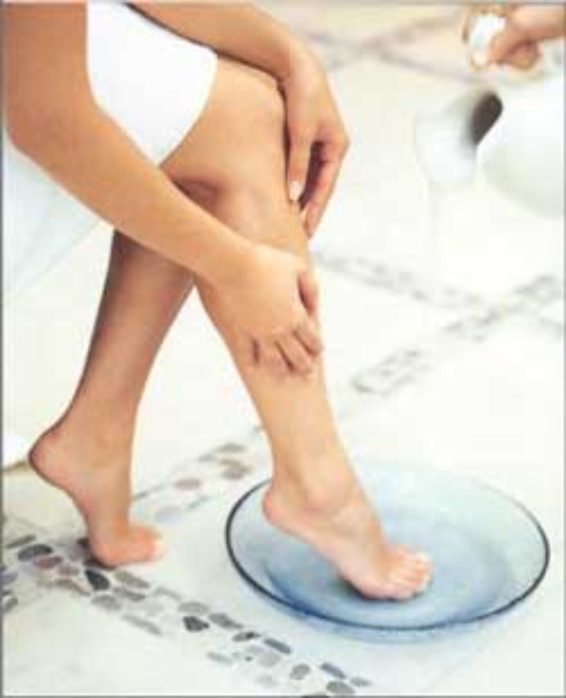 Acest mix puternic hidratant se folosește în special după epilare. Amestecă ingredientele și masează-ți picioarele, de jos în sus, cu o cantitate generoasă din loțiunea nou preparată. Încălzește niște prosoape subțiri și înfășoară-ți strâns picioarele cu ele. Dacă ai niște pantaloni supraelastici, îmbracă-i peste prosoapele înfășurate. Cere ajutorul cuiva sau ia fiecare picior în parte, unge-l, înfășoară-l în prosop și trage pantalonul pe deasupra. Pantalonii vor ține prosoapele în poziția fixată. Stai culcată pentru 30 – 45 de minute. După îndepărtarea prosoapelor, șterge excesul de loțiune și masează-ți insistent picioarele.