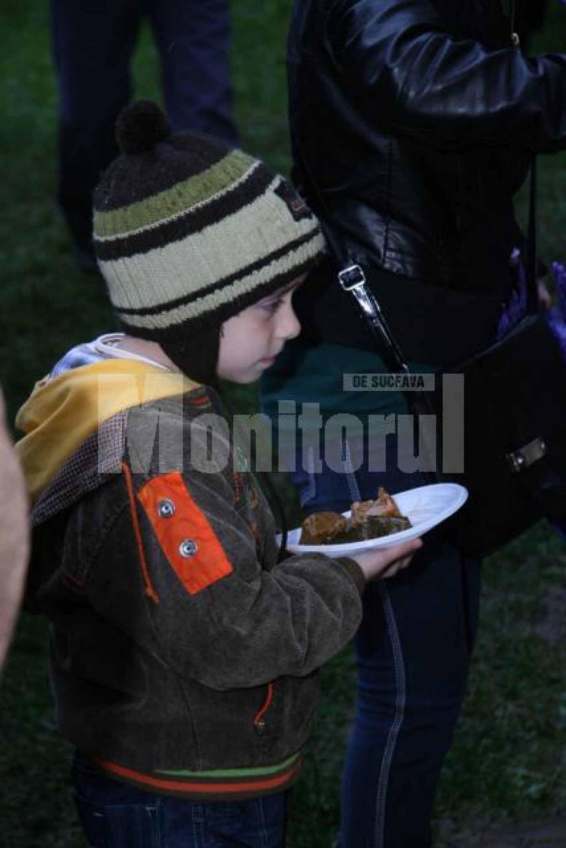 La fel ca în ultimii cinci ani, aseară, primarul Ion Lungu a împărțit, împreună cu familia, sarmale și sticle cu apă minerală pelerinilor veniți din diverse colțuri ale țării la hramul Sucevei.