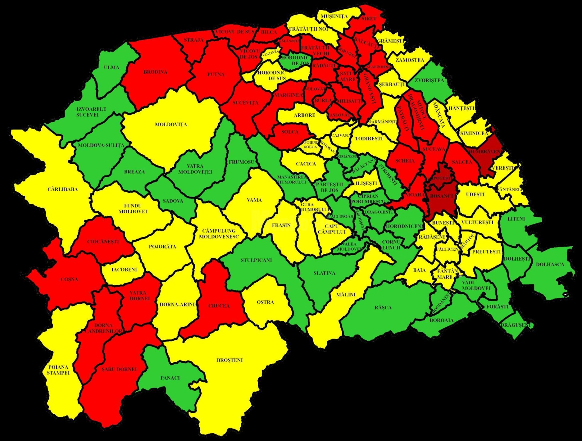 Harta incidentei Covid in judetul Suceava