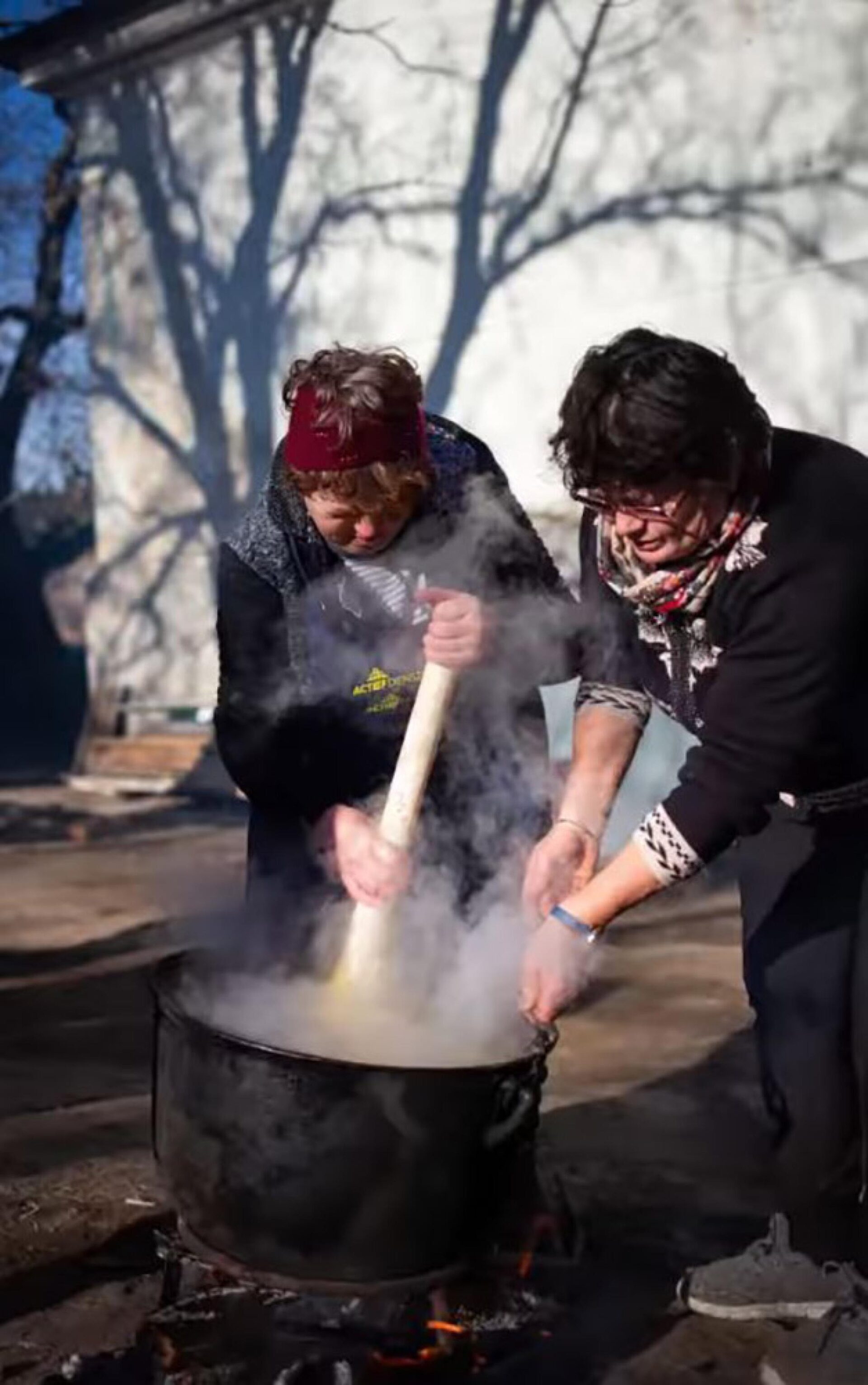 Pe lângă tradiționala tochitură, bunicii au avut pregătit în meniu și „mămăligă de barabule” cu lapte acru și brânză de burduf, toate gătite cu multă dragoste de voluntarii din Ciumârna, prieteni dragi ai „bunicilor” de la Solca de mai mulți ani.