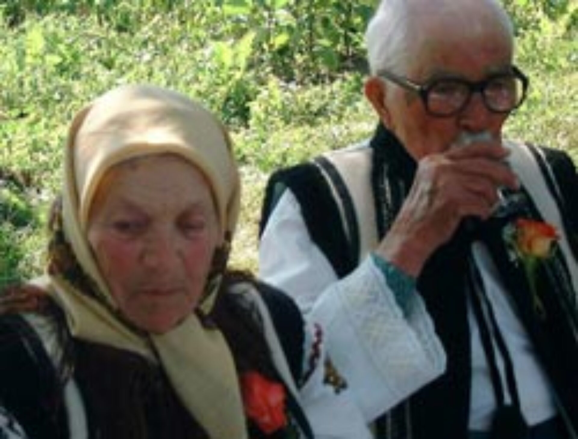 Dumitru și Maria Vodă, în vârstă de 96, respectiv 94 de ani, din Băișești, au venit duminică, în jurul prânzului, la biserica din Băișești, alături de sute de persoane, o bună parte rude de-ale celor doi bătrâni. Încă din curtea bisericii, invitații primeau ecusoane cu chipurile celor doi bătrânei, pe care, după cum ne spunea un strănepot de-al soților Vodă, „trebuie să le pui în piept, în loc de floare”. Înconjurați de cei dragi, Dumitru și Maria Vodă au luat parte la slujba închinată lor și căsătoriei lor de șapte decenii și jumătate. În timpul slujbei, preotul le-a povestit celor prezenți de “cea mai frumoasă pereche din sat”, de bădița Dumitru și tanti Maria, relatînd fel de fel de evenimente din viața plină a celor doi bătrâni. Soții Vodă stăteau alături de nașii lor, familia vicepriamrului din Fălticeni, Sabin Ghilea, și rememorau vremurile de odinioară, pe când bădița Dumitru pleca la război sau era ales primar al Băișeștiului, iar tanti Maria avea grijă de gospodărie și îngrijea de copii. Soții Vodă au avut 10 copii, din care doar cinci mai sunt astăzi în viață. Trei au murit în copilărie, la vârste fragede, iar alți doi au trecut în lumea celor drepți în urmă cu câțiva ani. Cel mai mare copil al lui Dumitru și Maria Vodă are acum 74 de ani, iar cel mai mic, 60. În total, după cum spunea și preotul din sat, neamul lui Vodă numără în prezent nu mai puțin de 44 de persoane. Cel mai emoționant eveniment al slujbei a fost momentul în care preotul le-a pus din nou verighetele pe degete celor doi și i-a binecuvântat. După slujbă, întreg alaiul s-a mutat cu mic, cu mare, în curtea casei familiei Vodă. Acolo, așa cum e obiceiul, “proaspeții” căsătoriți și-au invitat rudele și prietenii la masă și au închinat un păhărel de țuică în cinstea nunții de platină, prilej bun pentru bădița Dumitru de a le povesti mesenilor ce-a pățit la ieșirea din biserică: “M-am întâlnit cu un prieten de-al meu, care-i cu șase ani mai mic ca mine. Și el îmi spune: Dumitre, primul copil pe care-l faci, eu ți-l botez! Na, că la nunta asta, am găsit și cumătru..”. Deși se deplasează destul de greu, Dumitru Vodă spune că nu s-ar da în lături de la “valsul miresei” sau de la o “brașoveancă”. “Dom’le, am trăit bine. Că dacă nu era bine, divorțam și-mi cătam altă femeie…”, glumește bătrânul. Tanti Maria ridică un pahar de țuică în aer și cinstind cu ceilalți meseni, mărturisește secretul longevității relației cu soțul ei. „Secretul?! Am muncit, ne-am iubit și ne-am distrat. La distracție am fost cei mai buni… Am cununat, am botezat, avem la fini… Slavă Domnului… M-am împăcat bine cu omul și ăsta o fost lucru cel mai bun, că altfel…”. Ieri după-amiază, petrecerea era în toi. Rudele soților Vodă au pregătit un tort special cu chipurile celor doi, surpriza făcând-o să plângă de emoție pe tanti Maria. „Las-o, bre, să plângă, că așa-s miresele… mai emotive”, le-o taie scurt nea Dumitru femeilor ce încercau să-i liniștească soția. Nașul, Sabin Ghilea, făcea deja planurile pentru petrecerea sărbătorii a 100 de ani a finului. “Ca naș, îi sfătuiesc să se înțeleagă la fel cum s-au înțeles și până acum și să nu uite că sunt înconjurați de zeci de oameni dragi, care-i iubesc și-i prețuiesc. Să le Dumnezeu bătrâneți ușoare!”, a conchis viceprimarul Fălticenilor, Sabin Ghilea.