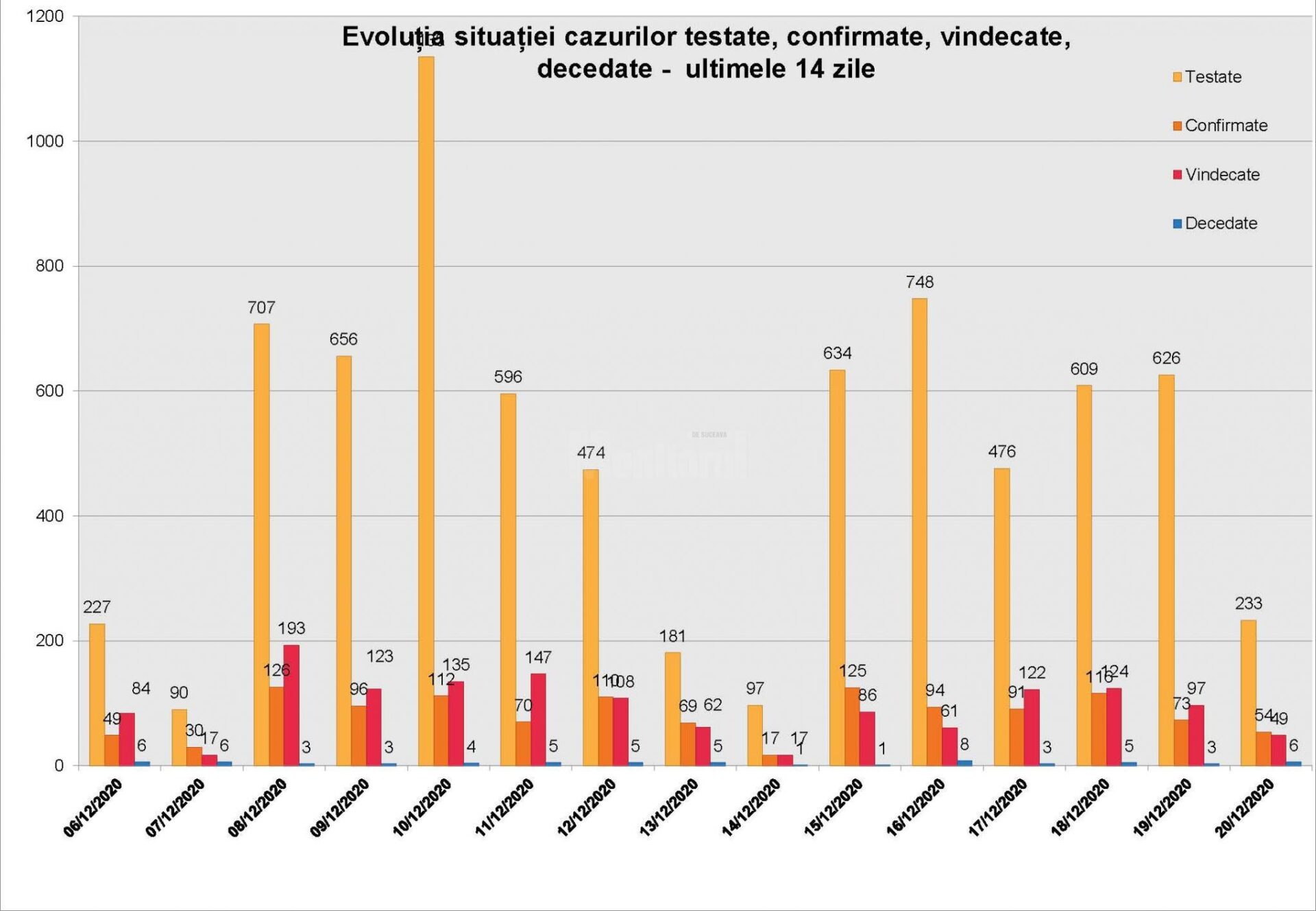 De la începutul pandemiei până în prezent, în județul Suceava au fost confirmate cu SARS-CoV-2, 14.863 persoane, dintre care 12.886 au fost declarate vindecate. În această perioadă, 747 de suceveni care s-au îmbolnăvit de Covid-19 au decedat. În ultimele două săptămâni, cele mai multe decese – 8, în rândul sucevenilor cu Covid, s-au înregistrat miercuri, 16 decembrie. Pe 17 decembrie au fost 3 decese, pe 18 decembrie au fost 5, pe 19 decembrie – 3 decese, iar duminică, 20 decembrie au fost raportate 6 decese în rândul persoanelor cu Covid.