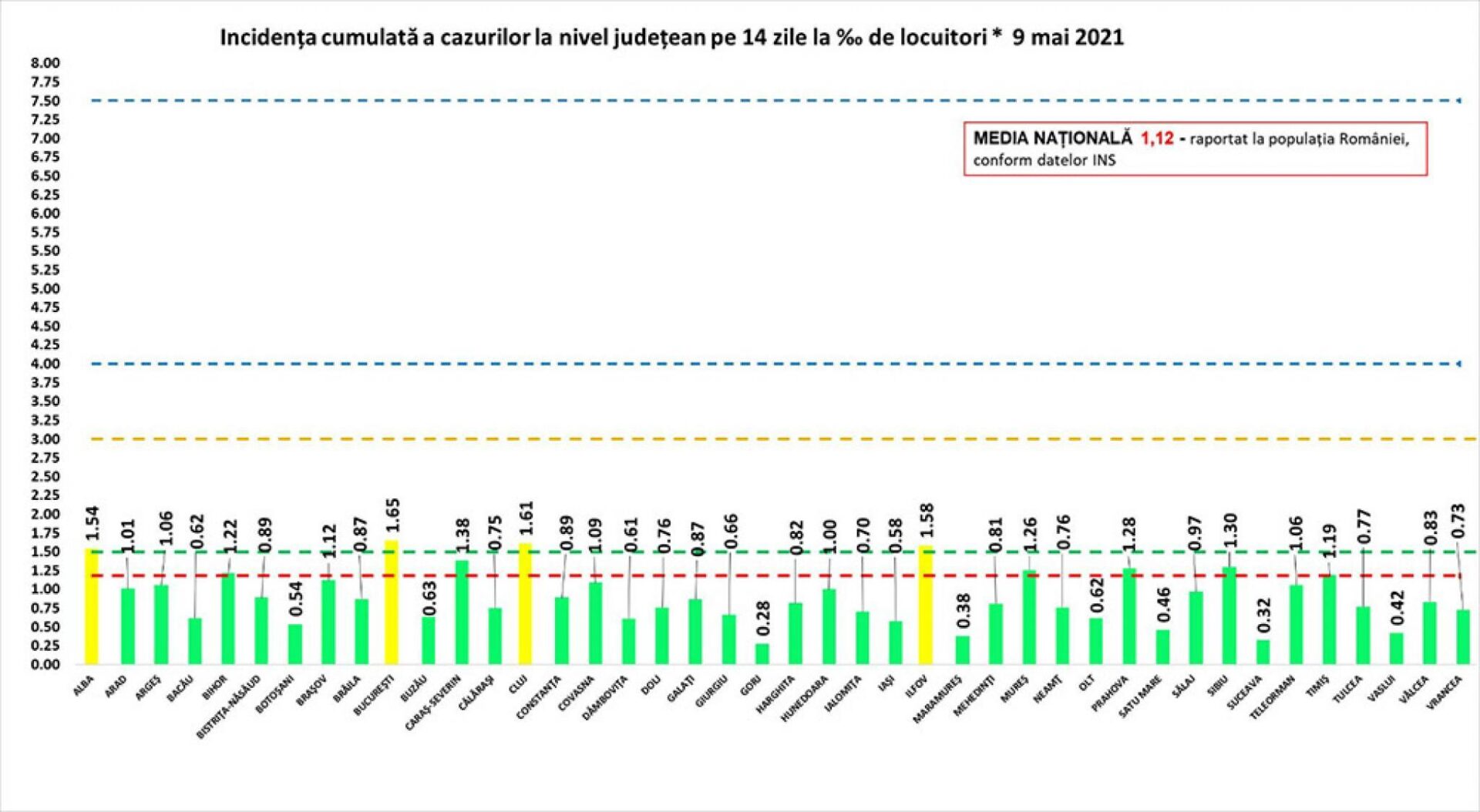 Puține cazuri noi au fost și la nivel național: 857 de persoane infectate cu SARS-CoV -2, din 14.654 de persoane testate RT-PCR și 5.809 cu teste rapide antigenice.