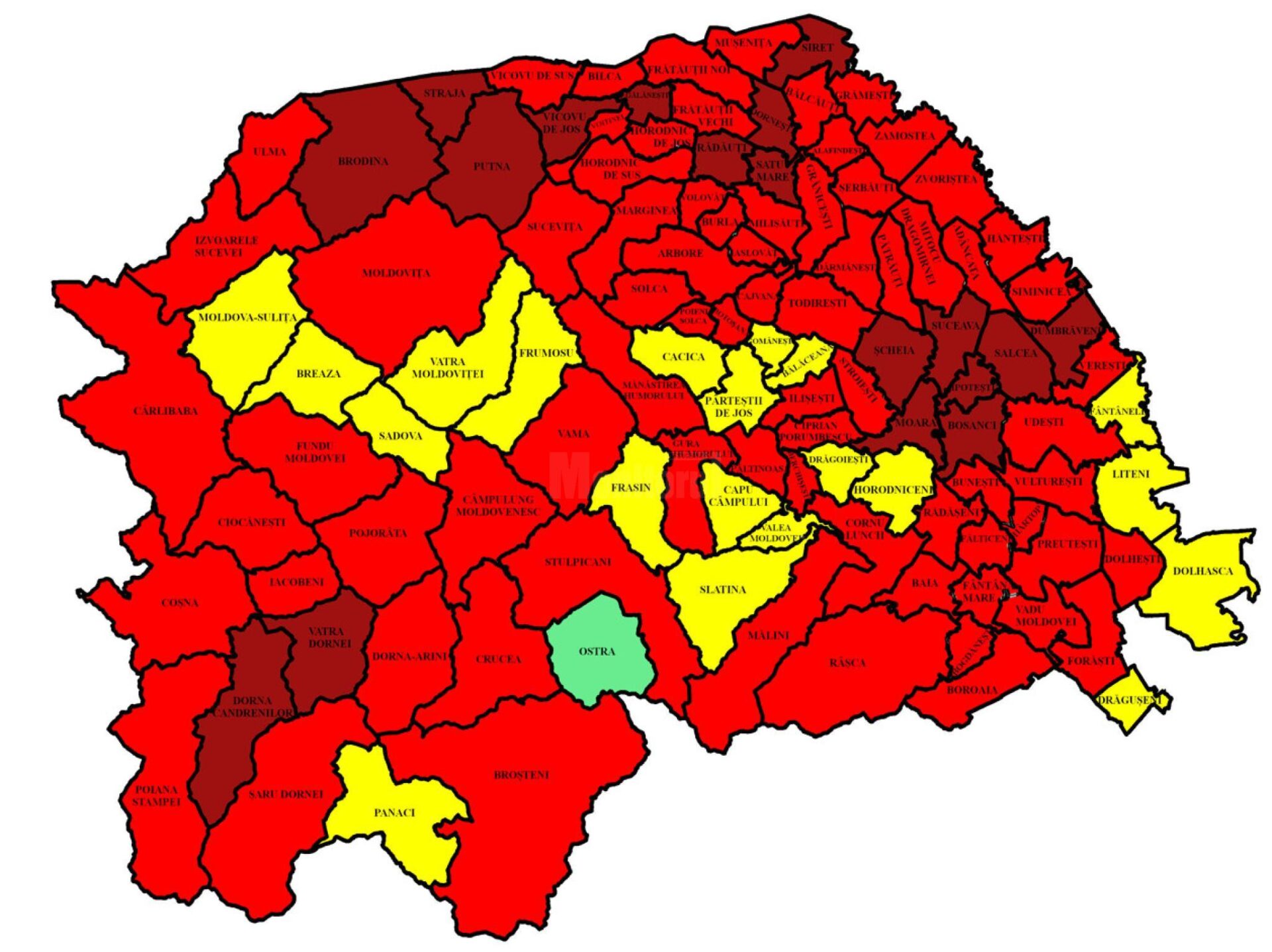 Rata de incidență la nivelul județului Suceava a ajuns la 8,38, dar o serie de localități înregistrează incidențe record, fiind în top la nivel național.