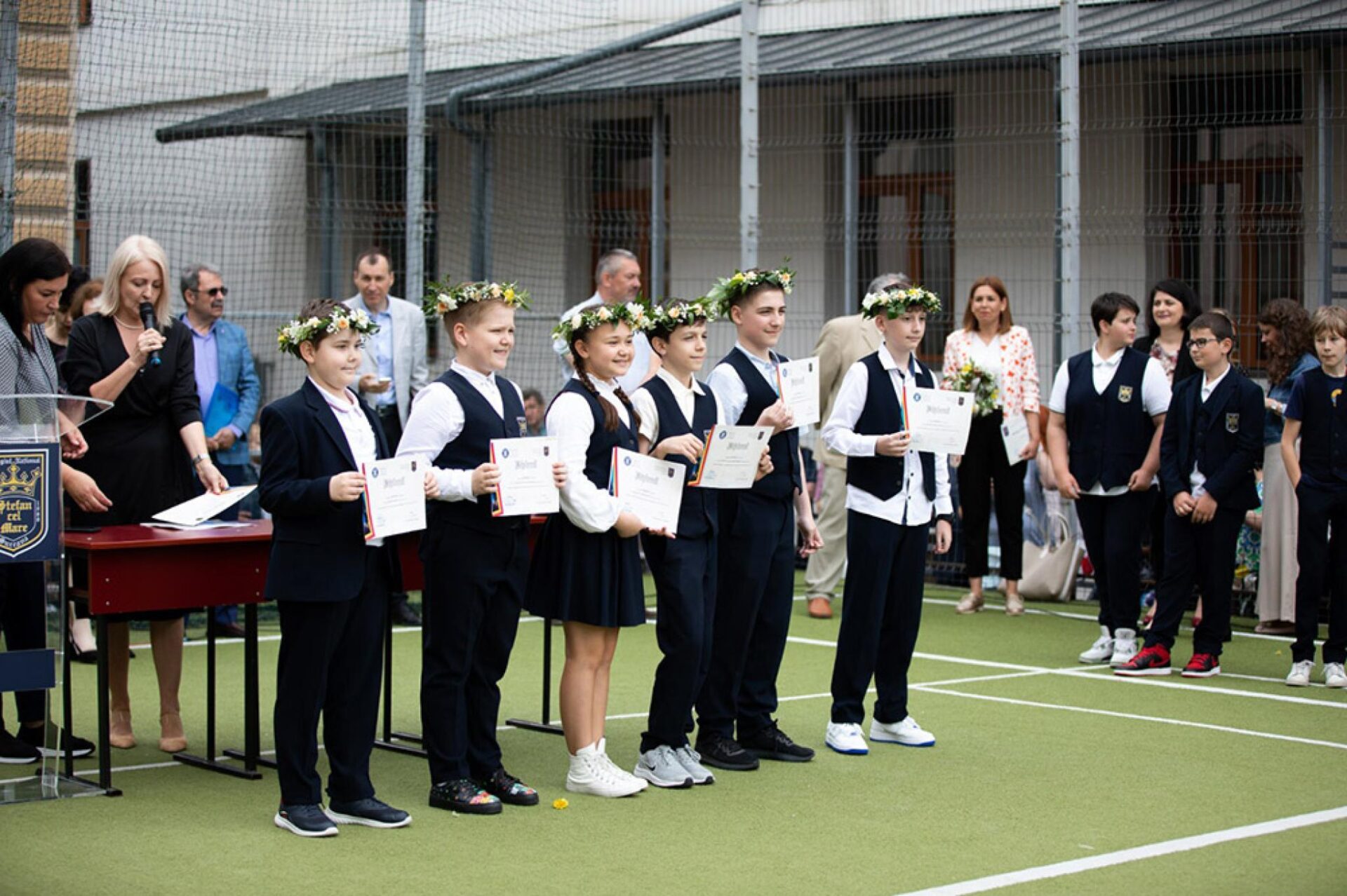 „(…) avem de apărat recorduri faimoase precum poziția a III-a în clasamentul național obținut la matematică de gimnaziștii ștefaniști la evaluarea națională din anul 2022. Provocare pentru viitorii absolvenți este și admiterea în număr mare a bacalaureaților colegiului la universități de mare prestigiu, ca de pildă Oxford, unde absolventul Ștefan Domonco, începând cu această toamnă, va fi student”, a mai subliniat Dan Popescu.