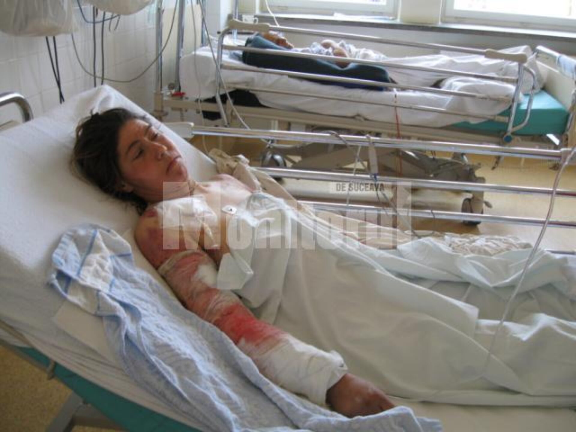 “Bolnava a suferit plăgi mușcate la nivelul mâinilor, toracelui și picioarelor, iar după ce a fost stabilizată s-a intervenit chirurgical pentru suturarea rănilor. Ea a fost internată la Reanimare și s-ar putea ca în zilele următoare să mai necesite o intervenție de chirurgie plastică. Când a fost adusă la spital, pacienta era într-o comă superficială, din care și-a revenit a doua zi dimineață. Ea a suferit o hemoragie masivă și ar fi murit exanghinată, dar, din fericire, imersia în apă i-a câștigat timpul necesar pentru a ajunge la Urgențe. S-a încetinit metabolismul celular și s-a favorizat oprirea sângerării din plăgile mai mici. În momentul de față, starea ei este stabilă și se pare că-și va reveni”, a spus purtătorul de cuvânt al Spitalului Suceava, dr. Tiberiu Brădățan.