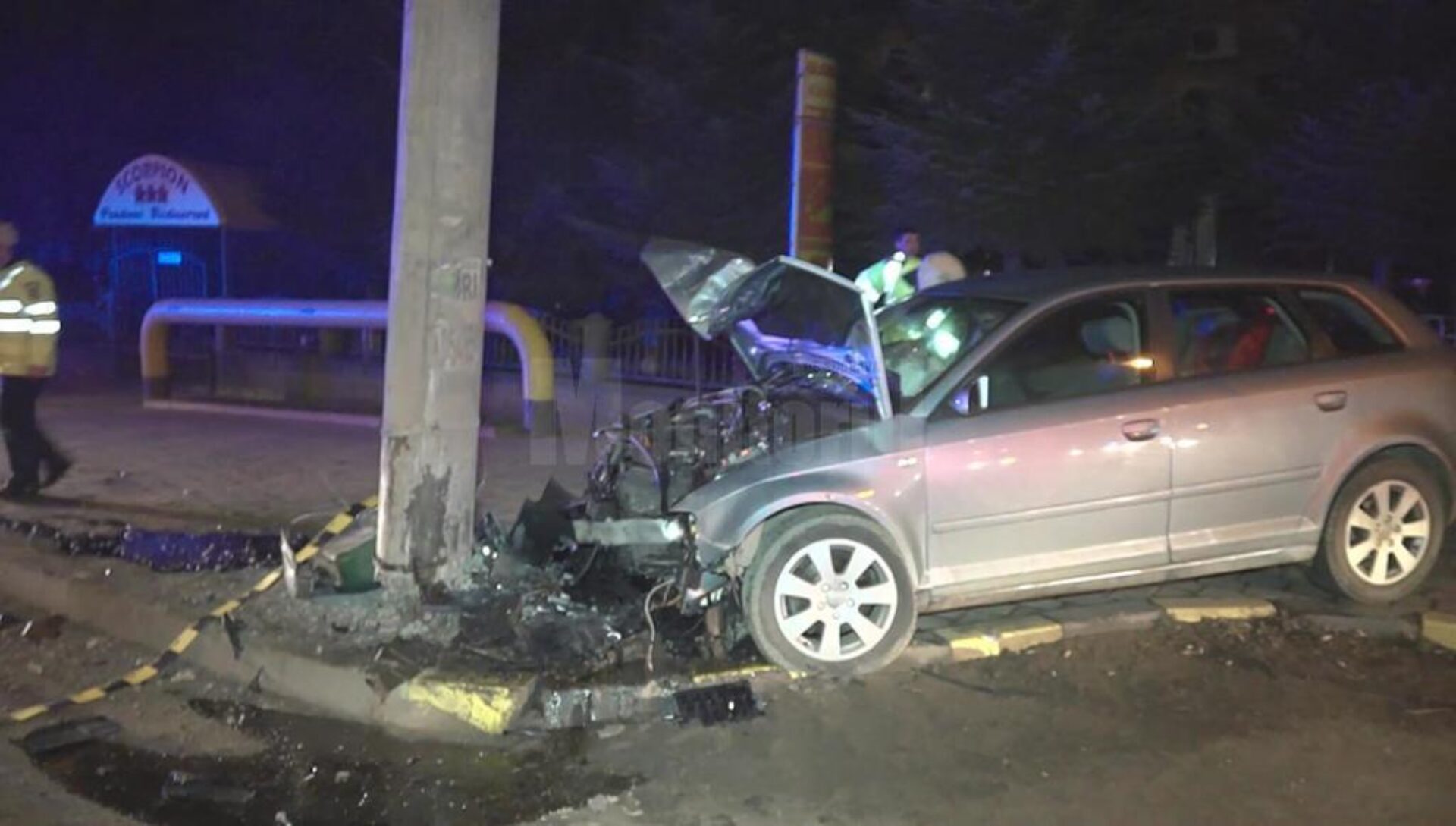 Ghinionul tânărului pare să fi fost și că mașina, fiind cu volan pe dreapta, a resimțit în plin impactul cu stâlpul.