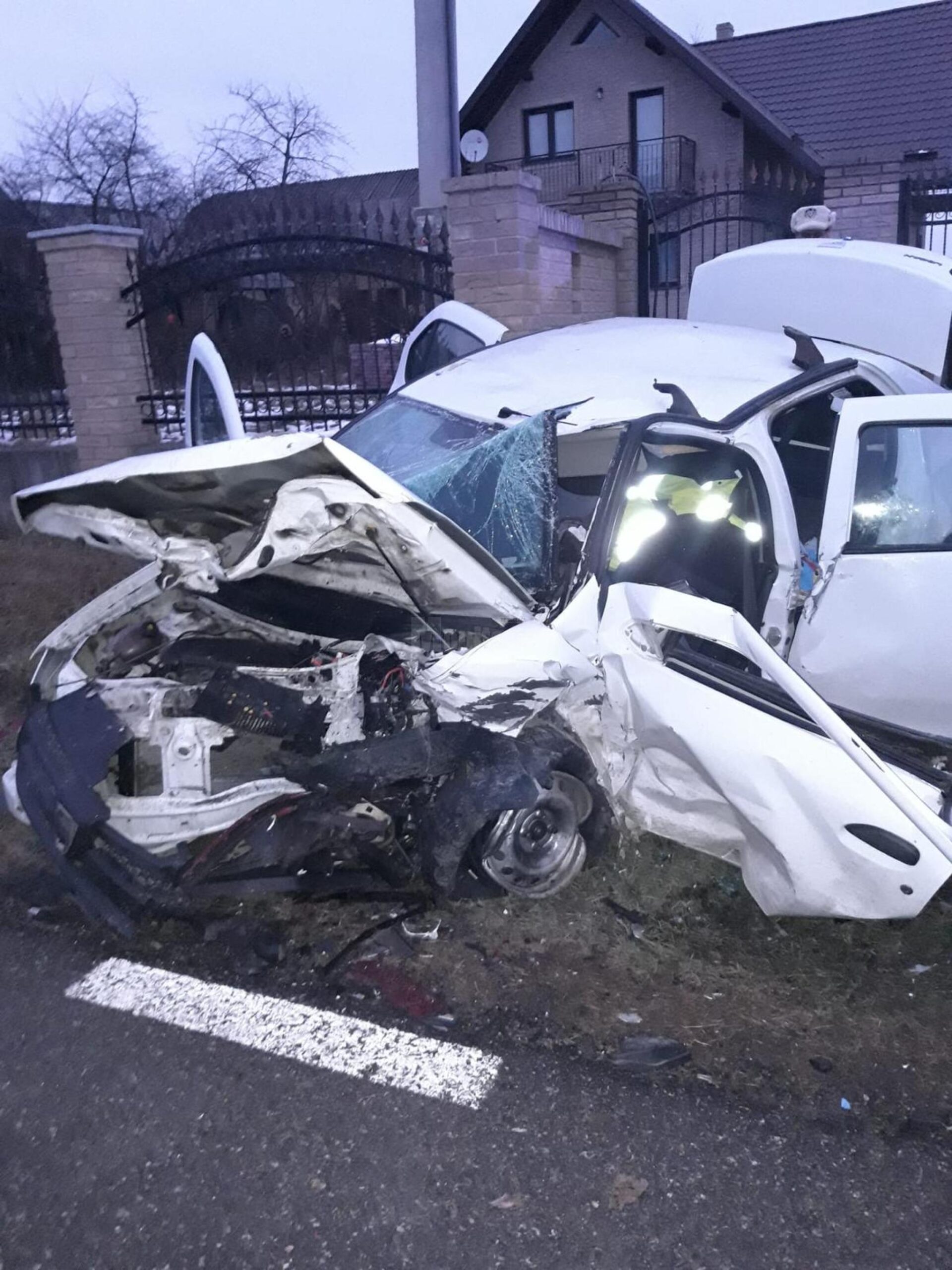 În urma impactului, cei doi ocupanți ai Daciei au fost răniți, unul fiind găsit încarcerat de pompierii militari.