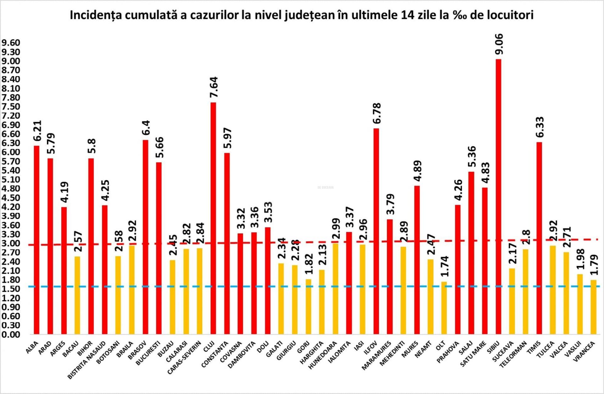 La nivel național, în urma testelor efectuate, față de ultima raportare, au fost înregistrate 10.108 cazuri noi de persoane infectate cu SARS – CoV – 2, acestea fiind cazuri care nu au mai avut anterior un test pozitiv. Municipiul București are 1.743 de cazuri noi, județul Cluj are 734 de cazuri noi, Ilfov – 441, Prahova – 424, Iași – 409.