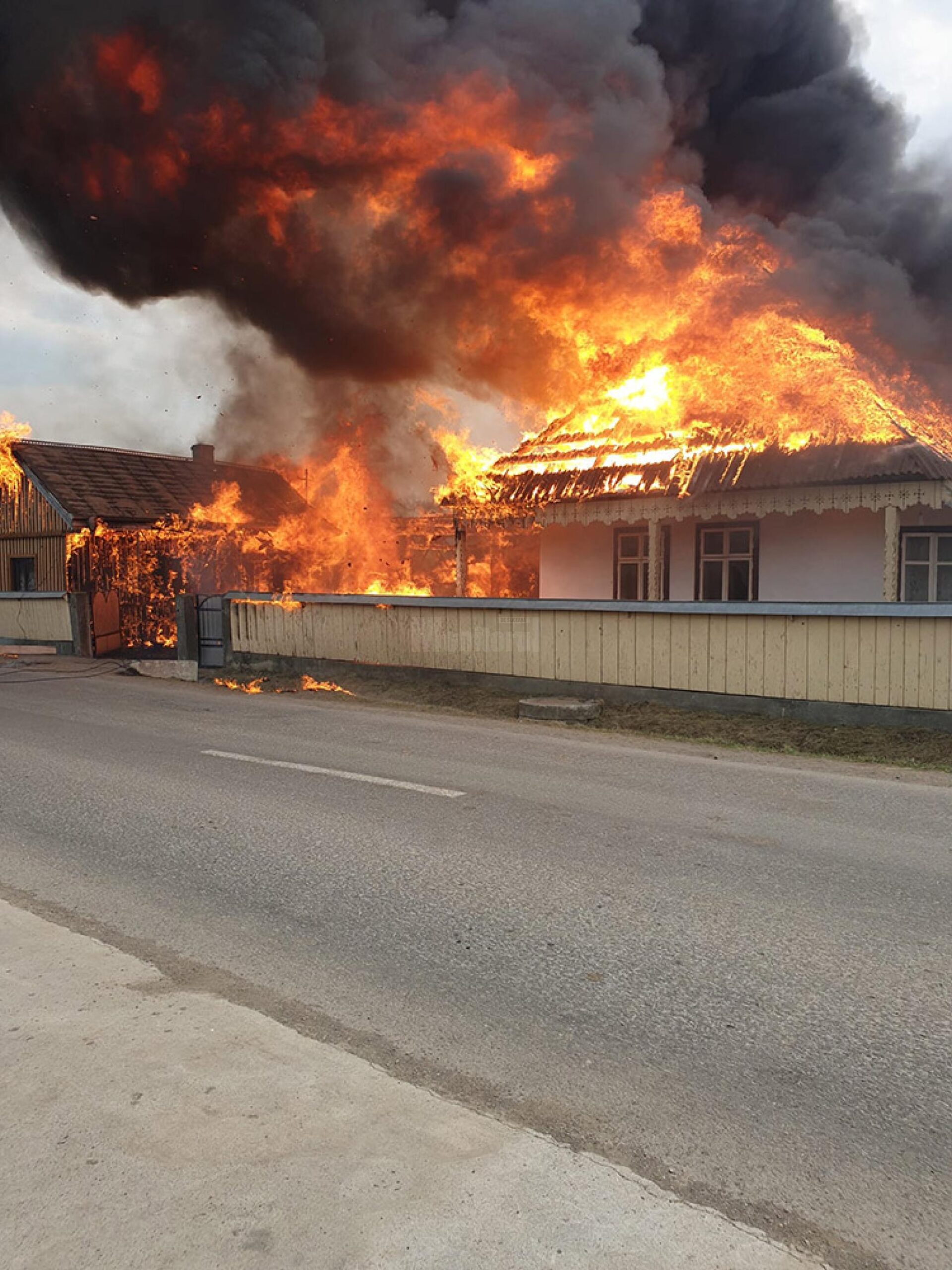 La sosirea echipajelor ardeau deja casa și anexele gospodărești, cu pericol de propagare la locuințele învecinate.
