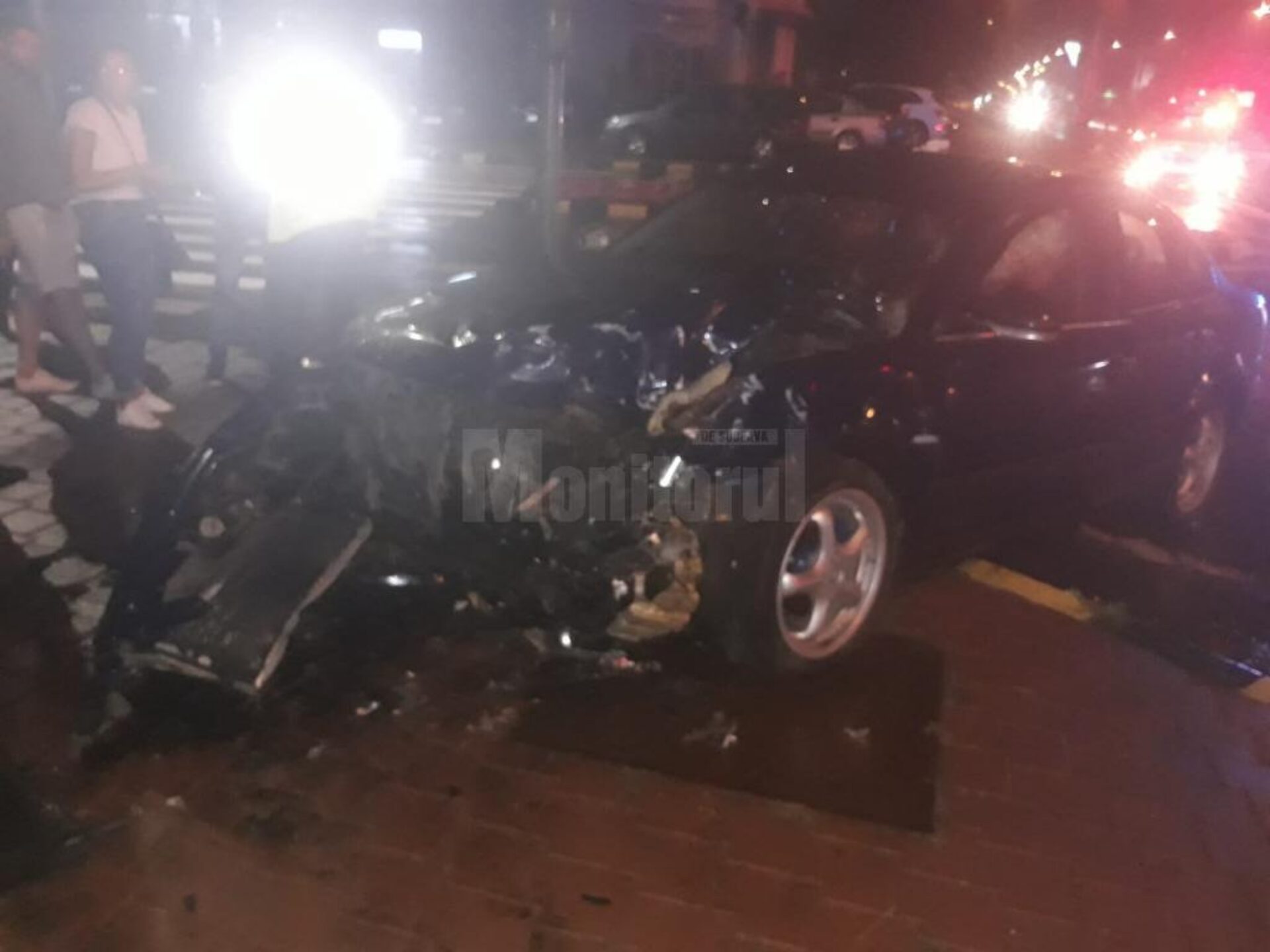 Uptade: Șoferul care a provocat accidentul de noaptea trecută era băut zdravăn. Aparatul etilotest a indicat o valoare de 1,45 mg/l alcool pur în aerul expirat, ceea ce înseamnă cam 3 la mie în sânge, o valoare extrem de ridicată. Bărbatul conducea un autovehicul marca Dacia Logan și cobora dinspre sensul giratoriu spre OMV, iar la un moment dat a vrut să vireze pe strada Bistriței.