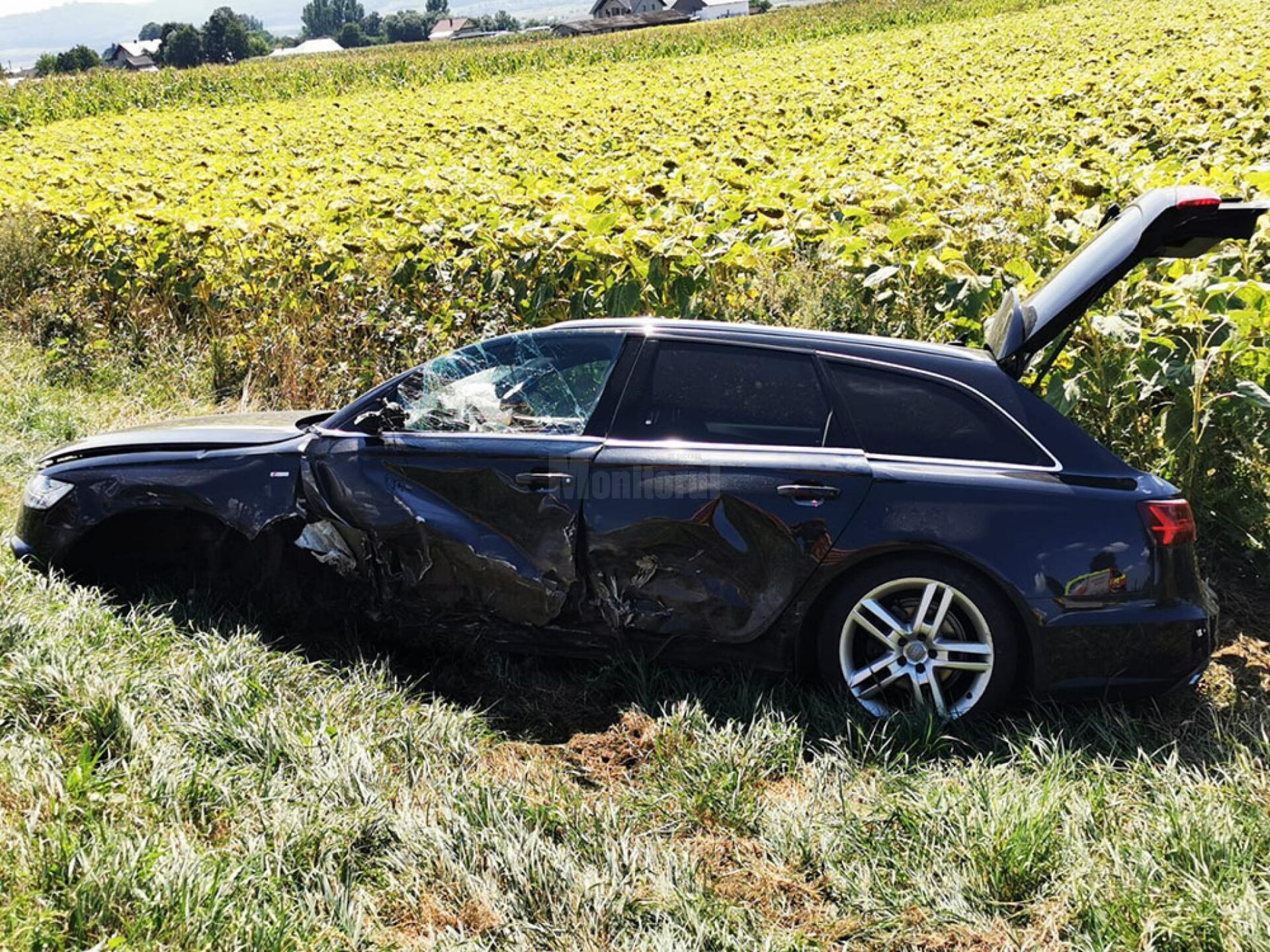 Ambele mașini au ieșit în decor în urma impactului. Renaultul condus de tânărul de 21 de ani s-a răsturnat într-un lan de porumb.