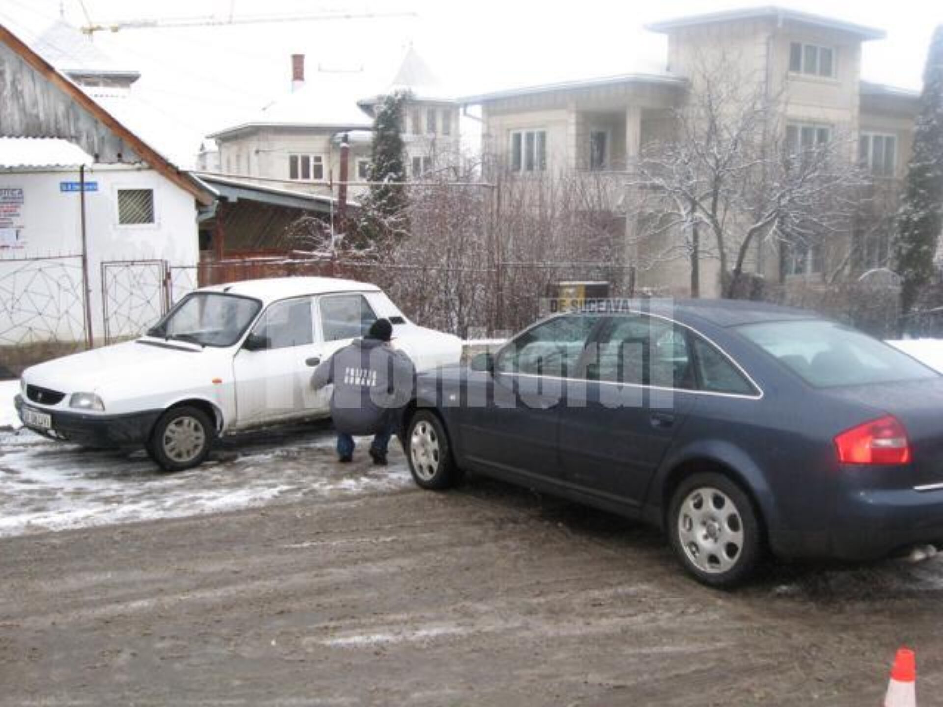 Accidentul s-a petrecut ieri dimineață, în jurul orei 7.45, în apropiere de zona Băii centrale. Scăpând autoturismul Audi A6 de sub control, șoferul, Dan Nicolae G., în vârstă de 34 de ani, din municipiul Suceava, a intrat într-o Dacie parcată regulamentar pe celălalt sens de mers.