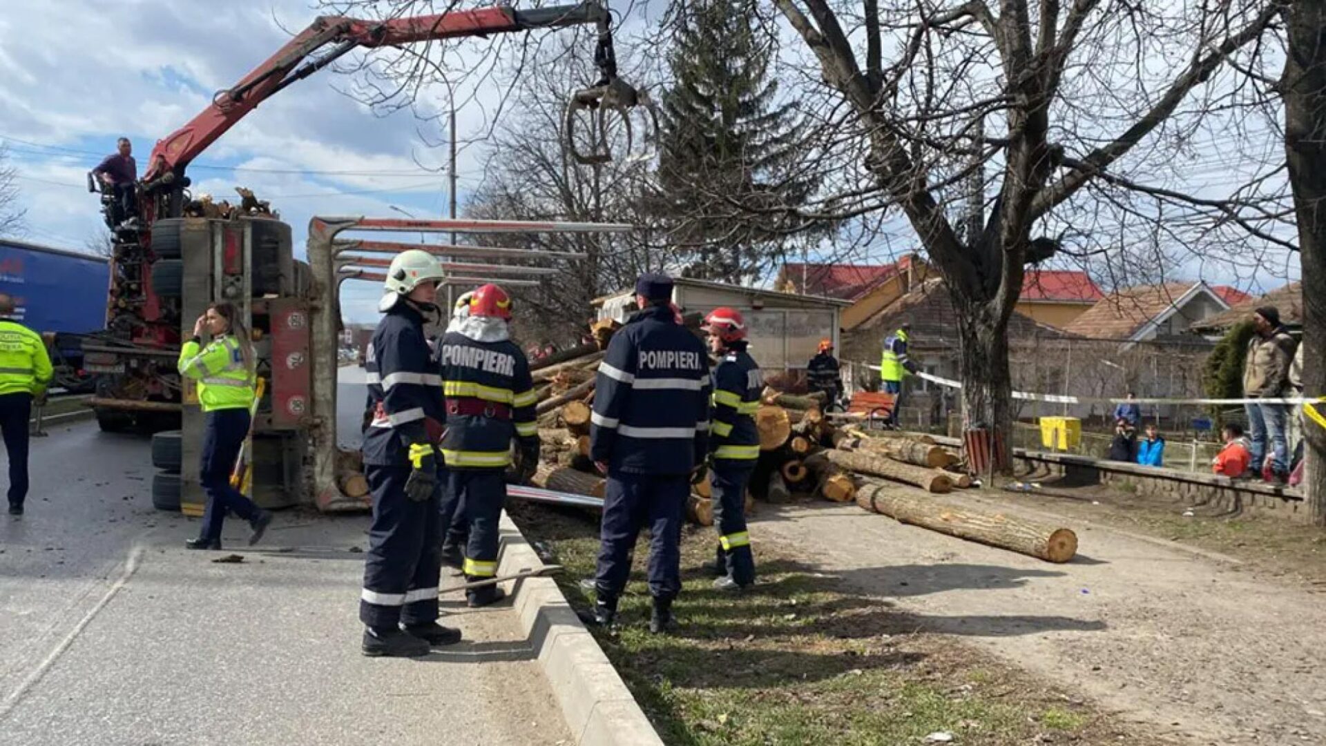 Accidentul s-a petrecut în interiorul municipiului, într-o zonă în care oamenii stau la ocazie, spre Moțca. Era în jurul orei 11.30, iar într-o curbă semiremorca s-a răsturnat, iar buștenii au căzut pe carosabil și trotuar.