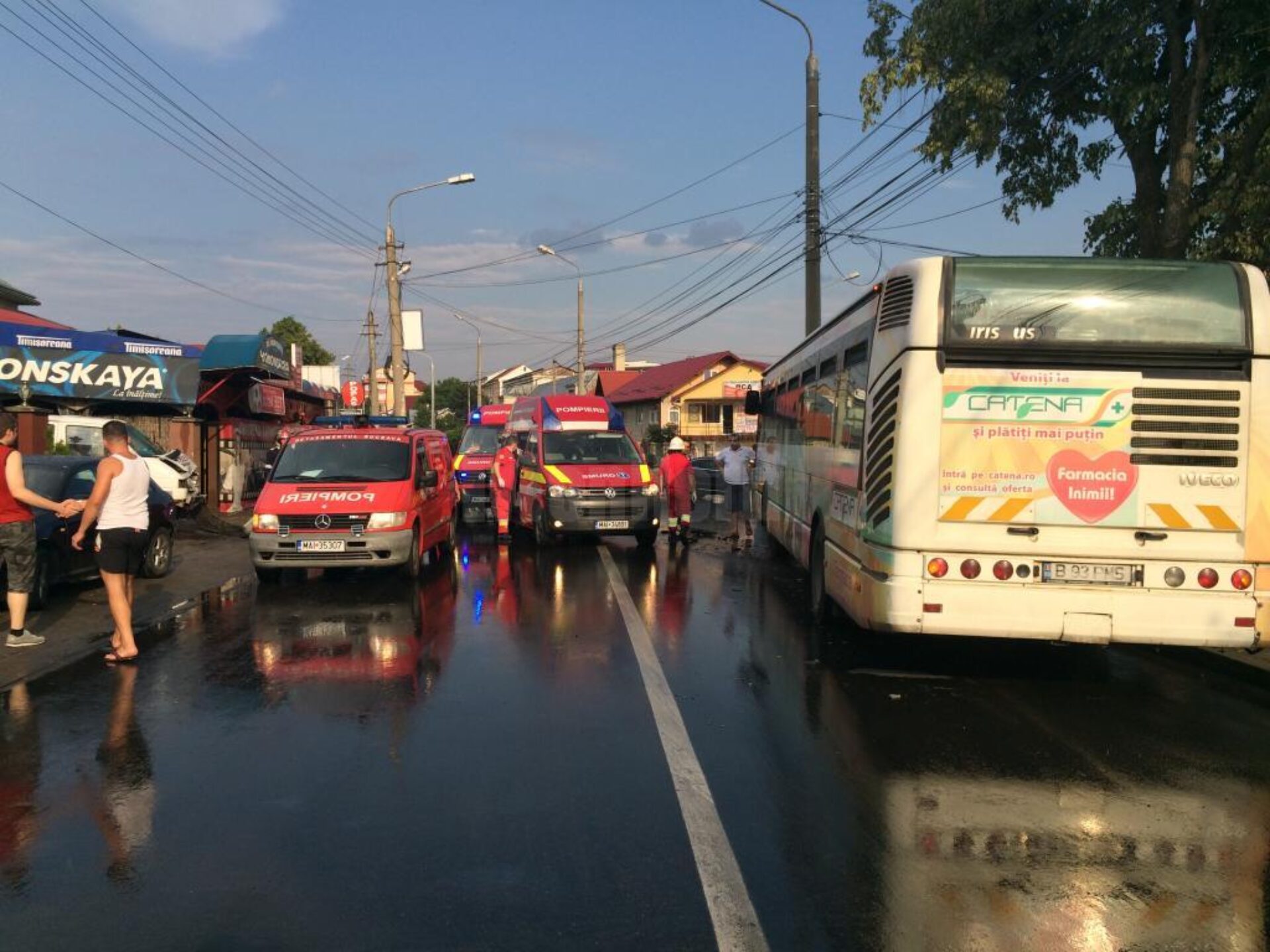 Un autobuz al societății de transport public local din Suceava a fost implicat într-un accident, miercuri, după ce o autoutilitară de transport mobilă a pătruns pe sensul opus de mers și a lovit în plin vehiculul în care se aflau în jur de 15 călători. Accidentul s-a petrecut în jurul orei 17.30, pe strada Gheorghe Doja, în cartierul Burdujeni al municipiului Suceava. Autobuzul circula pe linia 2 și plecase de puțin timp în cursă. Șoferul, în vârstă de 49 de ani, a plecat de pe strada Jean Bart, a intrat pe strada Gheorghe Doja și brusc s-a trezit cu o autoutilitară care a intrat direct în autobuz. În urma impactului cele mai importante leziuni au fost suferite de șoferul autoutilitarei care a pătruns pe sensul opus, în vârstă de 30 de ani, care a fost preluat de o ambulanță și transportat de urgență la Spitalul Județean Suceava. Și pasagerul din dreapta sa a suferit leziuni la cap, însă a primit îngrijiri medicale la fața locului, fără mai fi dus la spital. De asemenea, un copil aflat în autobuz a fost dus și el la Spitalul Județean Suceava, pentru investigații suplimentare.