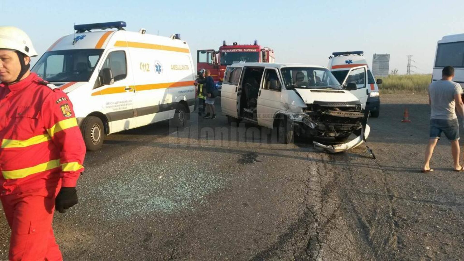 Un accident rutier între un microbuz și un autoturism a avut loc duminică dimineață, la ora 6.44, la ieșire din municipiul Suceava spre Fălticeni, pe E 85.