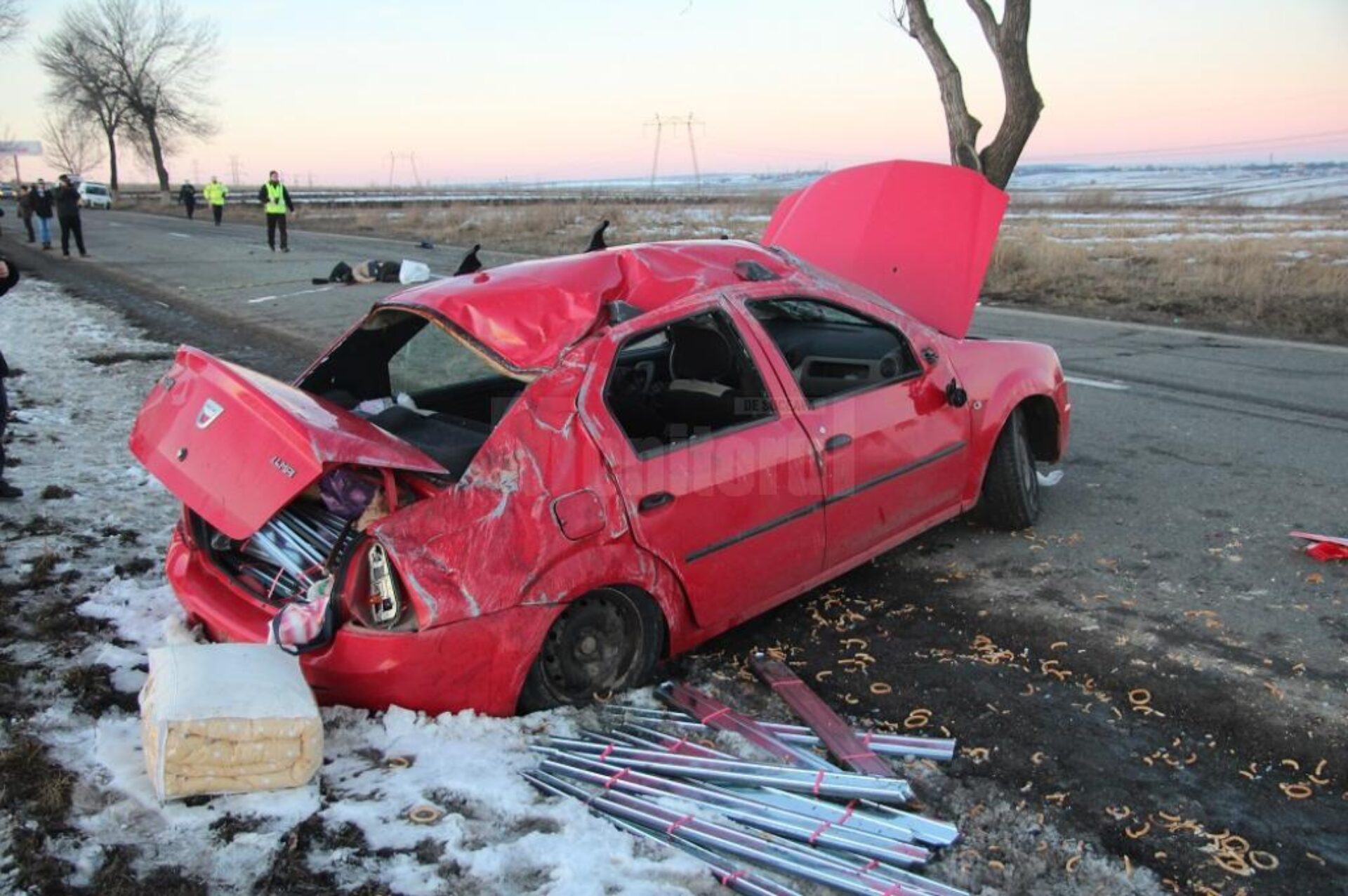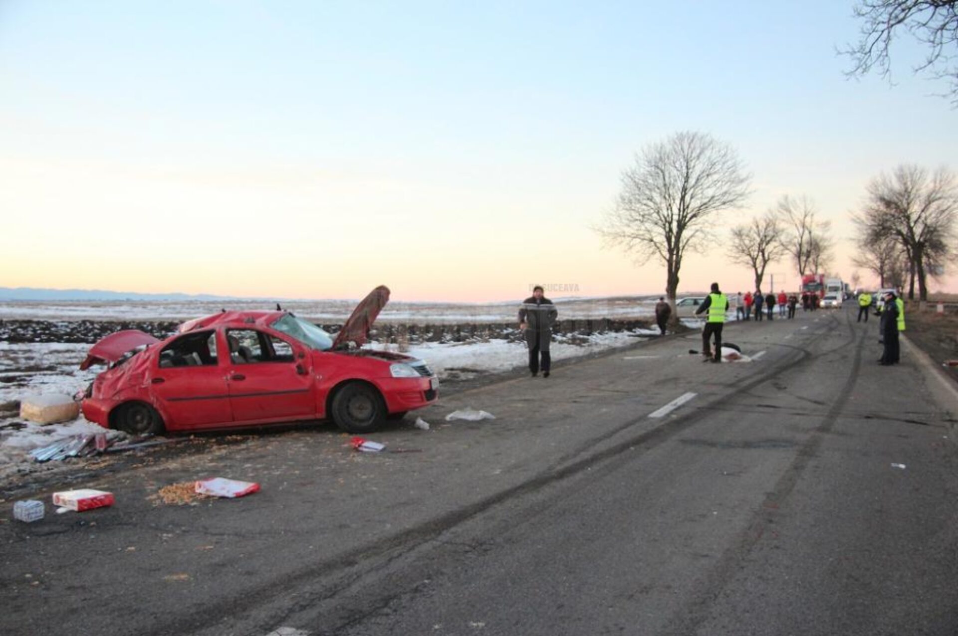 Un tragic accident rutier, soldat cu decesul unui bărbat în vârstă de 60 de ani, s-a petrecut marți, în jurul orei 16.00, pe E 85, la intrarea în Cumpărătura dinspre municipiul Suceava. Bărbatul care a decedat se afla la volanul unui autoturism Dacia Logan și circula pe direcția Suceava-Fălticeni. Martorii au relatat că acesta a intrat în depășirea unor mașini, iar la un moment dat ar fi tras brusc de volan și nu a mai putut controla mașina. Autoturismul Logan s-a răsturnat de mai multe ori pe carosabil. Trei dintre cei patru ocupanți ai mașinii au fost proiectați pe șosea. Conform primelor informații, în mașină se aflau două cupluri din comuna Rădășeni. Bărbatul care conducea mașina a decedat, în timp ce soția sa și ceilalți doi soți, care erau pe bancheta din spate, au fost preluați de ambulanțe și transportați la Spitalul Județean Suceava. În urma accidentului traficul de pe E 85 a fost blocat în totalitate o oră.