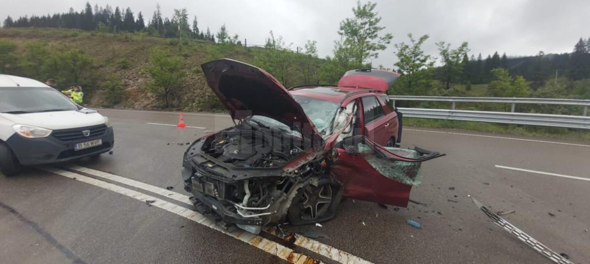 Un tânăr în vârstă de 21 de ani, care conducea un vehicul greu, a provocat un accident pe DN 17, în pasul Mestecăniș, din cauza neadaptării vitezei într-o curbă. Victima sa a fost o tânără de 22 de ani, care conducea un autoturism Mercedes Benz, și care a scăpat din fericire fără leziuni grave. Accidentul s-a produs sâmbătă, în jurul orei 11.30, în condiții de carosabil ud. Din cercetările polițiștilor rezultă că șoferul de 21 de ani, din comuna Coșula, județul Botoșani, în timp ce conducea autoutilitara Man, în Pasul Mestecăniș, pe direcția spre municipiul Suceava, nu a adaptat viteza într-o curbă deosebit de periculoasă la dreapta, cauză din care remorca a derapat și a pătruns pe sensul opus de mers, unde a intrat în coliziune frontală cu Mercedesul condus regulamentar spre municipiul Vatra Dornei, de o tânără în vârstă de 22 de ani, din municipiul Suceava. Ambii conducători auto au fost verificați cu etilotestul, rezultând alcoolemie 0.