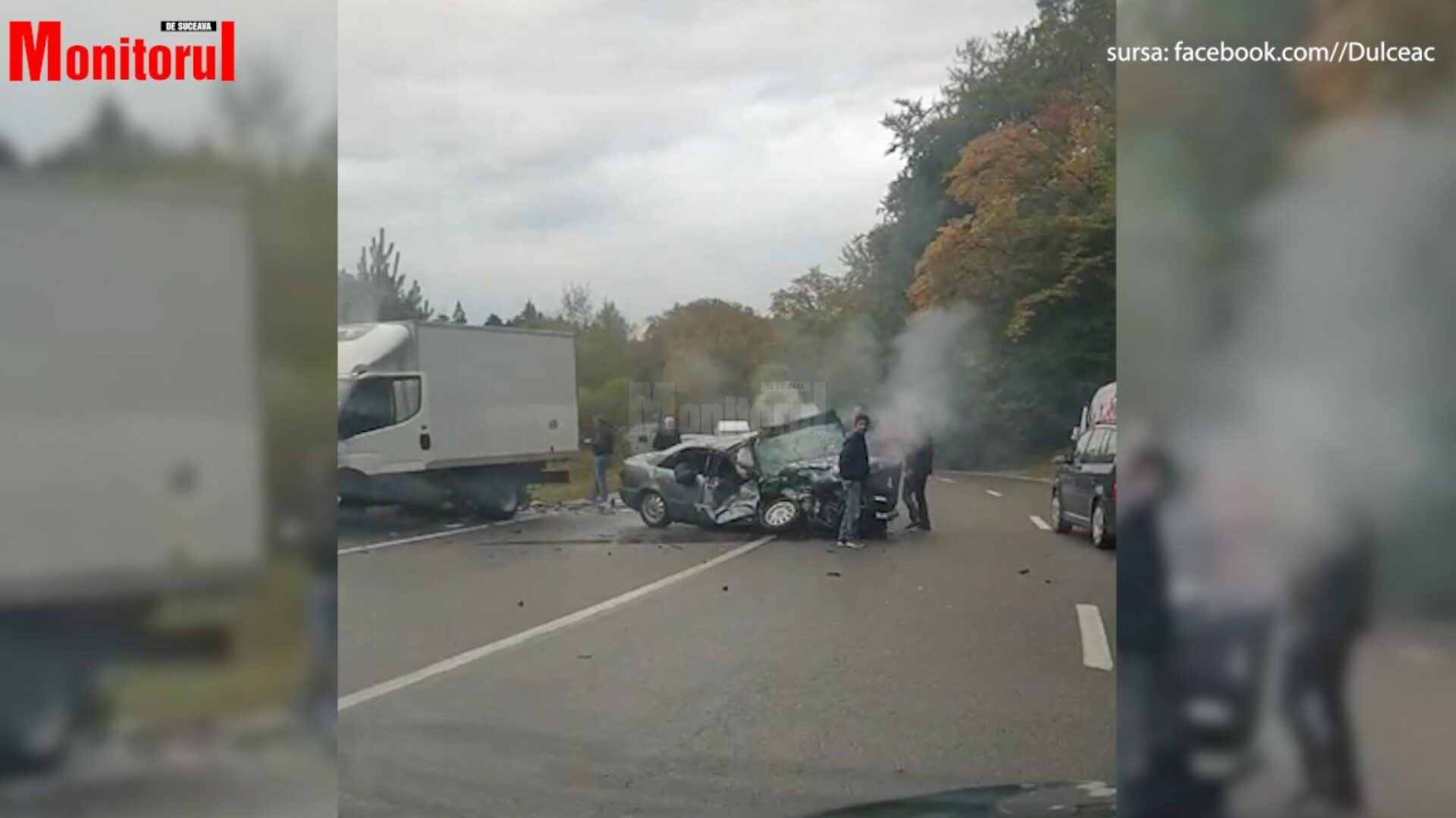 O autoutilitară și un autoturism s-au ciocnit miercuri dimineață, pe DN 17, în pădurea de la Ilișești, spre Păltinoasa. Impactul a fost foarte violent. Pompierii militari care au ajuns la fața locului au constatat că în fiecare din cele două mașini erau doar șoferii. Șoferul din autoturism era blocat în interior, dar nu era încarcerat. El era conștient și a fost deblocat și transportat cu ambulanța la Spitalul Județean, pentru evaluare medicală.