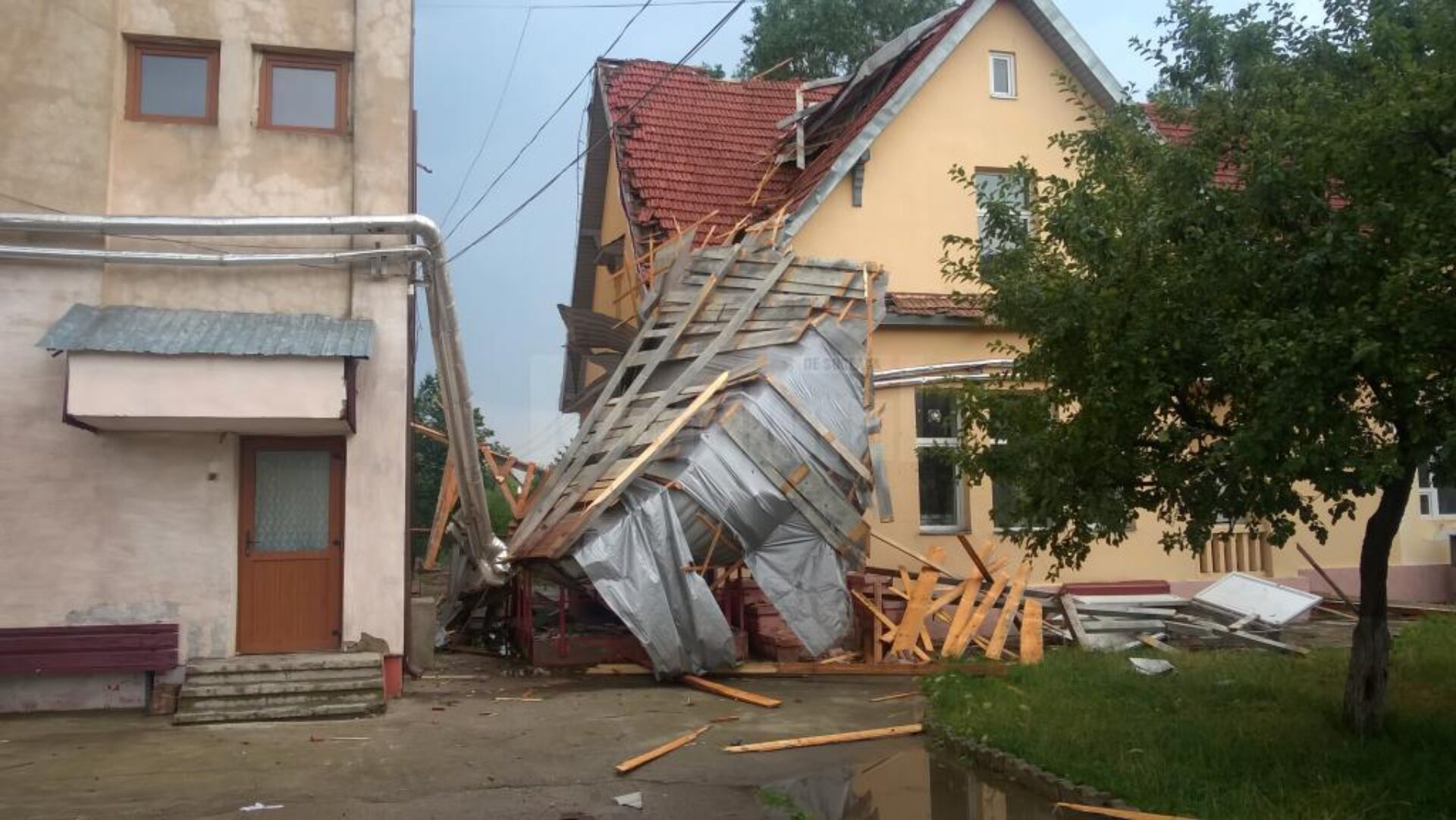 Acoperișul internatului unui liceu din Rădăuți, smuls de vântul puternic