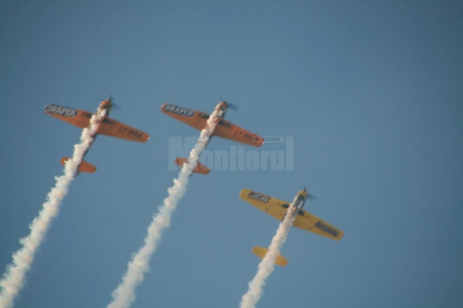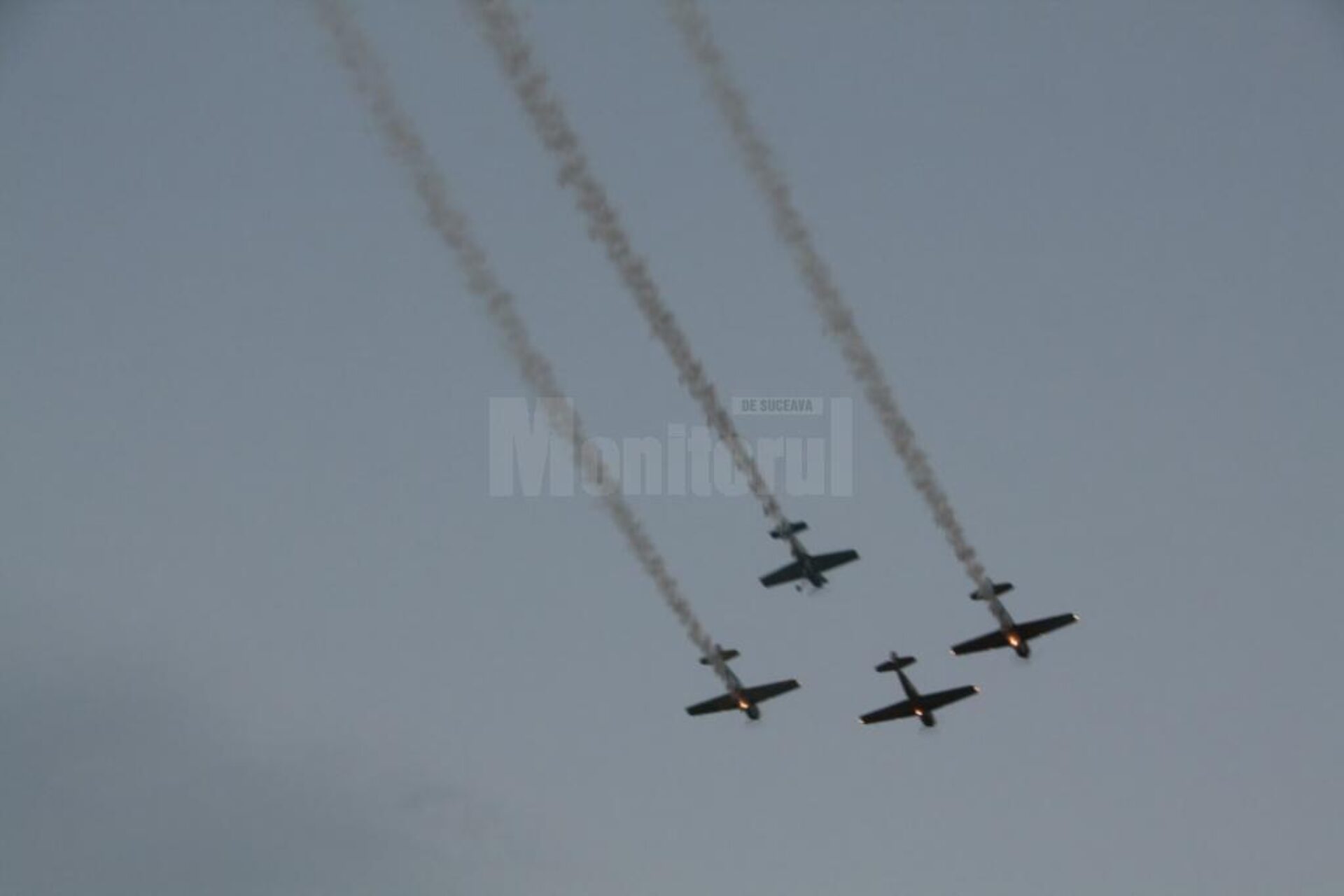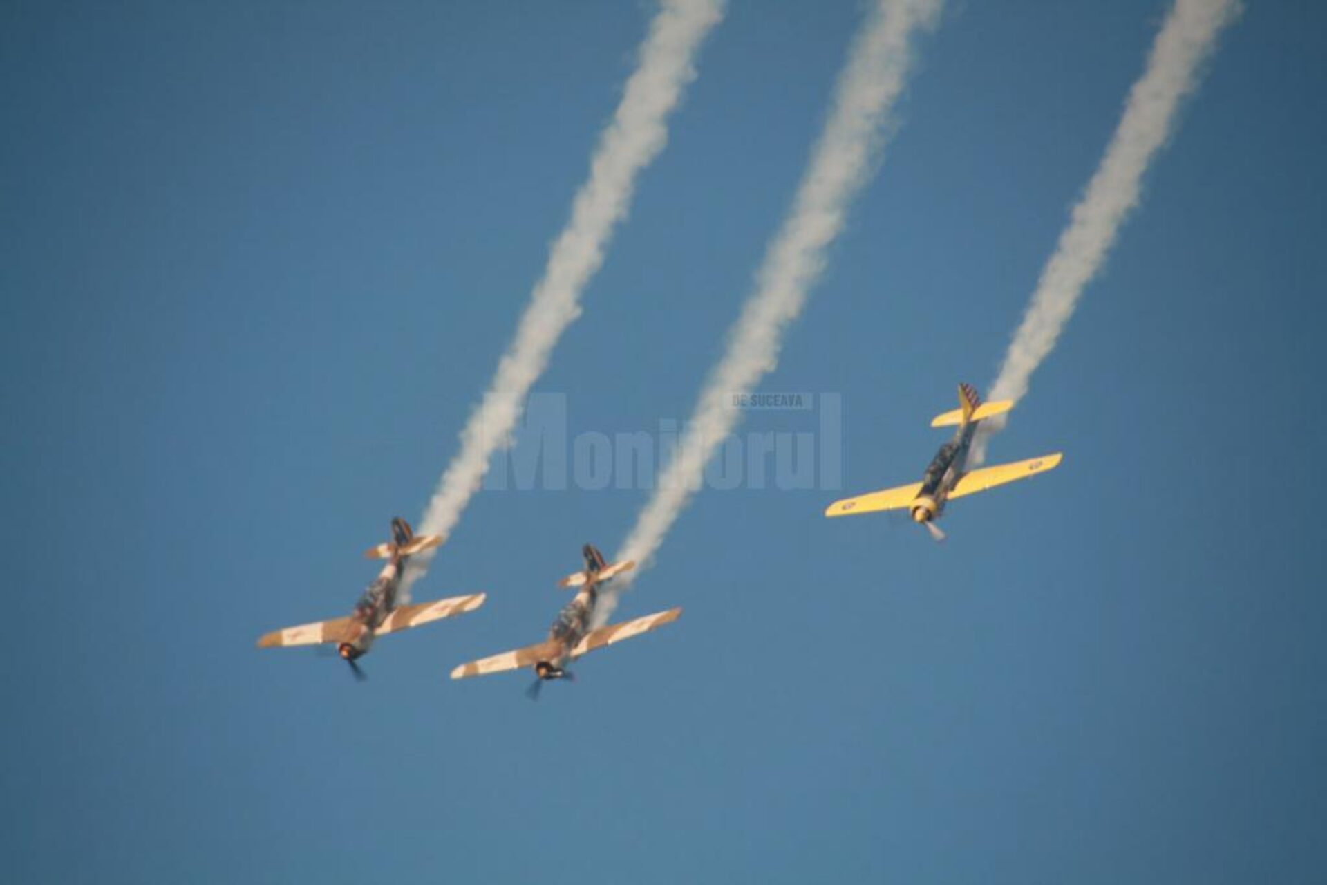 Plăcerea zborului și devotamentul față de avioanele lor, Yak 52, fabricate la Bacău, au fost oglindite în modul în care aceștia au zburat, oferind demonstrații de înaltă acrobație. Daniel Ștefănescu, Ioan Postolache și Dan Conderman au încins motoarele avioanelor și și-au dovedit măiestria în fața sucevenilor care i-au așteptat.