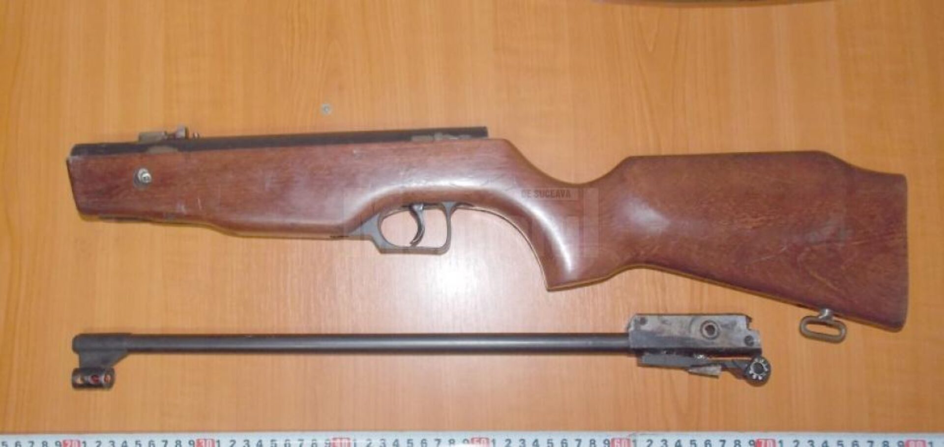Polițiștii au indisponibilizat 3 pistoale cu gaz și 7 cartușe, o pușcă de tir sportiv cu aer comprimat, un pistol cu proiectile de cauciuc și 6 cartușe aferente.