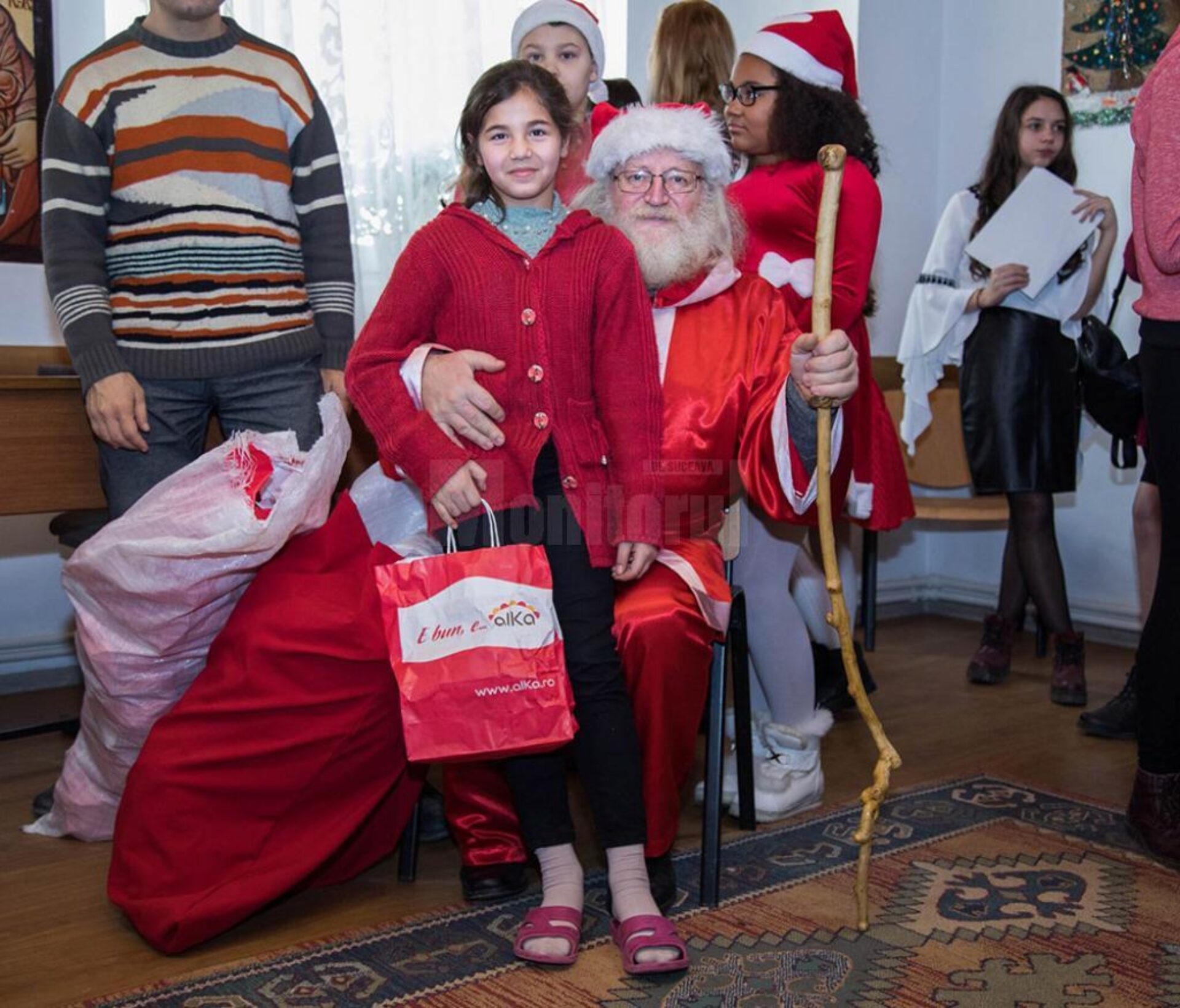În deschiderea acțiunilor, elevii Școlii Gimnaziale ”Mihai Halunga” din Hănțești, coordonați de prof. Mihai Greciuc, au încântat sufletele copiilor cu o scenetă de teatru religios: ”Trebuie că-i o minune”, închinată Nașterii Domnului Iisus Hristos, apoi elevii Școlii ”Miron Costin”, coordonați de învățătoarea Anna Ștefura, au oferit un scurt moment artistic (colinde și dans). Darurile de la Moș Crăciun au fost oferite cu ajutorul sponsorilor: Alka Trading București, SC Rocast Nord Suceava, Fundația Filantropică Creștin Medical „Christiana”, SC Simba Invest SRL din Bacău, SC Trust Orizont Suceava, SC Killer din Horodnic de Jos, SC Clevit SRL, Lucia Croitoru și Liliana Popovici, care au oferit dulciuri pentru toți participanții, produse de igienă și de întreținere pentru centrele de copii, rechizite școlare în valoare de peste 1.200 de lei oferite de elevii și cadrele de la Școala ”Miron Costin” Suceava; produse de igienă, de dezinfecție oferite de Fundația Filantropică Creștin Medical „Christiana”, de cadrele didactice de la Școala Gimnazială ”Miron Costin” Suceava și de Lucia Croitoru și Liliana Popovici, care au sprijinit cu produse de igienă și de întreținere centrele de copii. Nu în ultimul rând, organizatorii îi mulțumesc lui Moș Crăciun, în persoana lui Ioan Leonte.