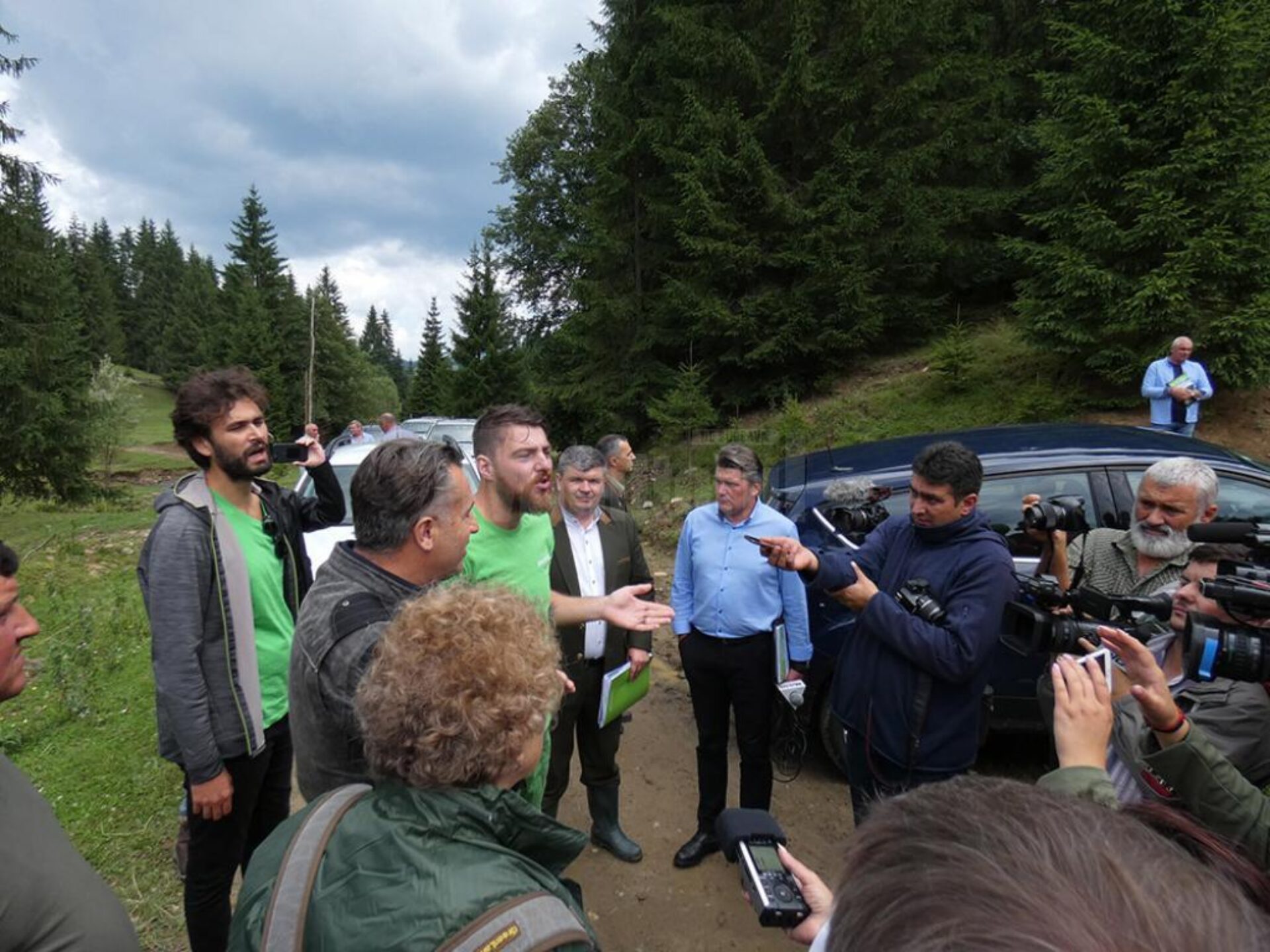 Ajunși la locul prezentat în postarea inițială de Facebook privind tăierile ilegale din pădurile Bucovinei, activiștii Greenpeace au refuzat să meargă în teren, ignorând total invitația directorului RNP, Gheorghe Mihăilescu, care a pornit pe munte, pe un traseu dificil, urmat doar de câțiva lucrători silvici.