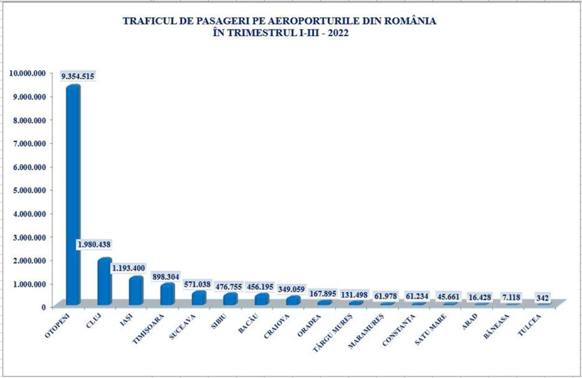 Aeroportul „Ștefan cel Mare” Suceava a încheiat trimestrul trei al acestui an pe locul patru în topul aeroporturilor regionale și pe locul cinci dacă se ia în considerare și traficul de pasageri de pe Aeroportul Internațional Otopeni. Președintele Consiliului Județean Suceava, Gheorghe Flutur, a arătat că potrivit datelor oficiale ale Asociației Aeroporturilor din România, în primele nouă luni din 2022, pe Aeroportul „Ștefan cel Mare” din Suceava au fost procesați 571.038 de pasageri. Cu această cifră, Aeroportul „Ștefan cel Mare” se situează pe locul patru în rândul aeroporturilor regionale, după cel din Cluj – 1.980.438 de pasageri, Iași – 1.193.400 de pasageri și Timișoara – 898.304.