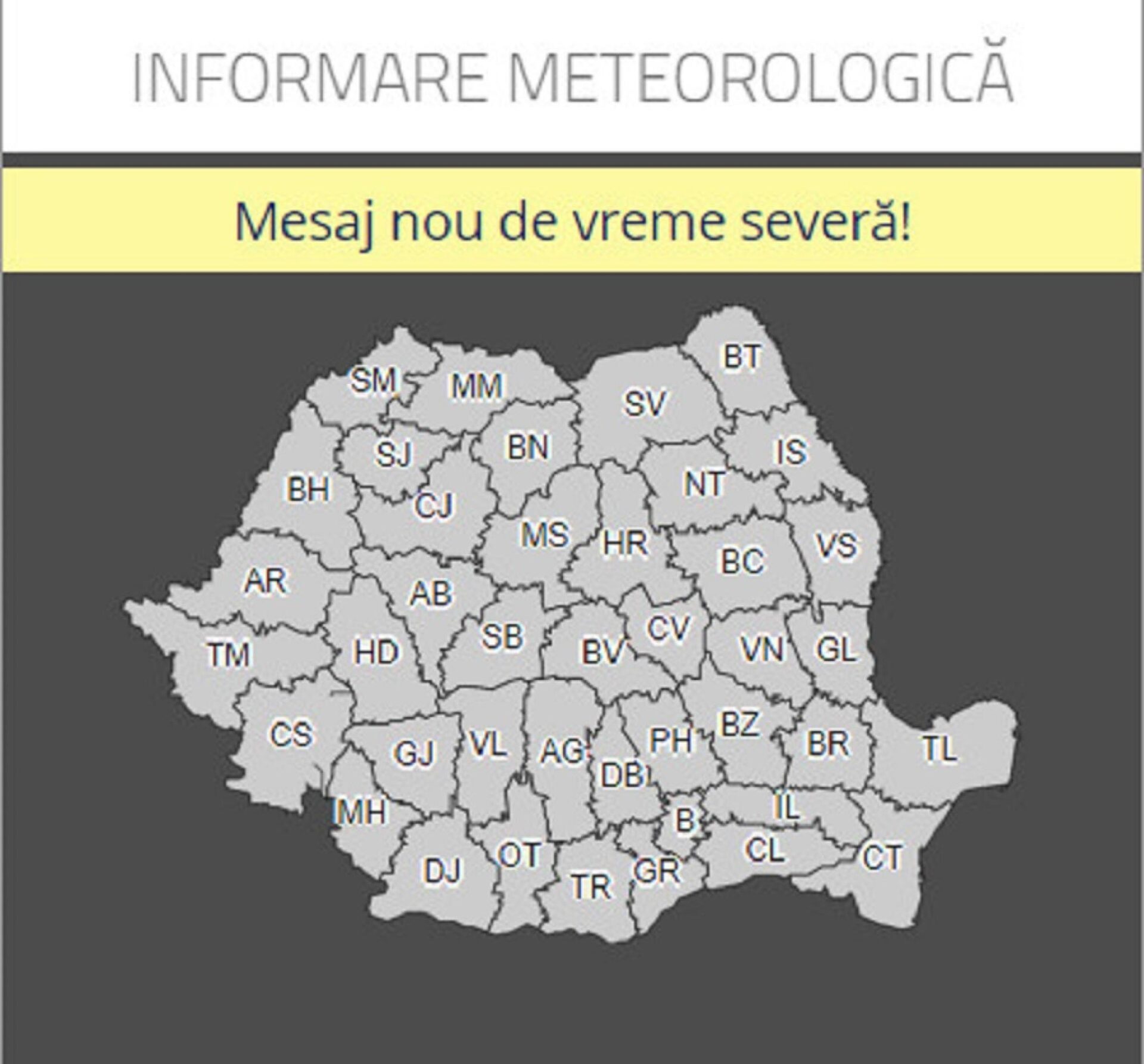 Avertizarea intră în vigoare începând de luni, 9 ianuarie 2023, ora 18.00, și este valabilă până miercuri, 11 ianuarie 2023, ora 18.00.