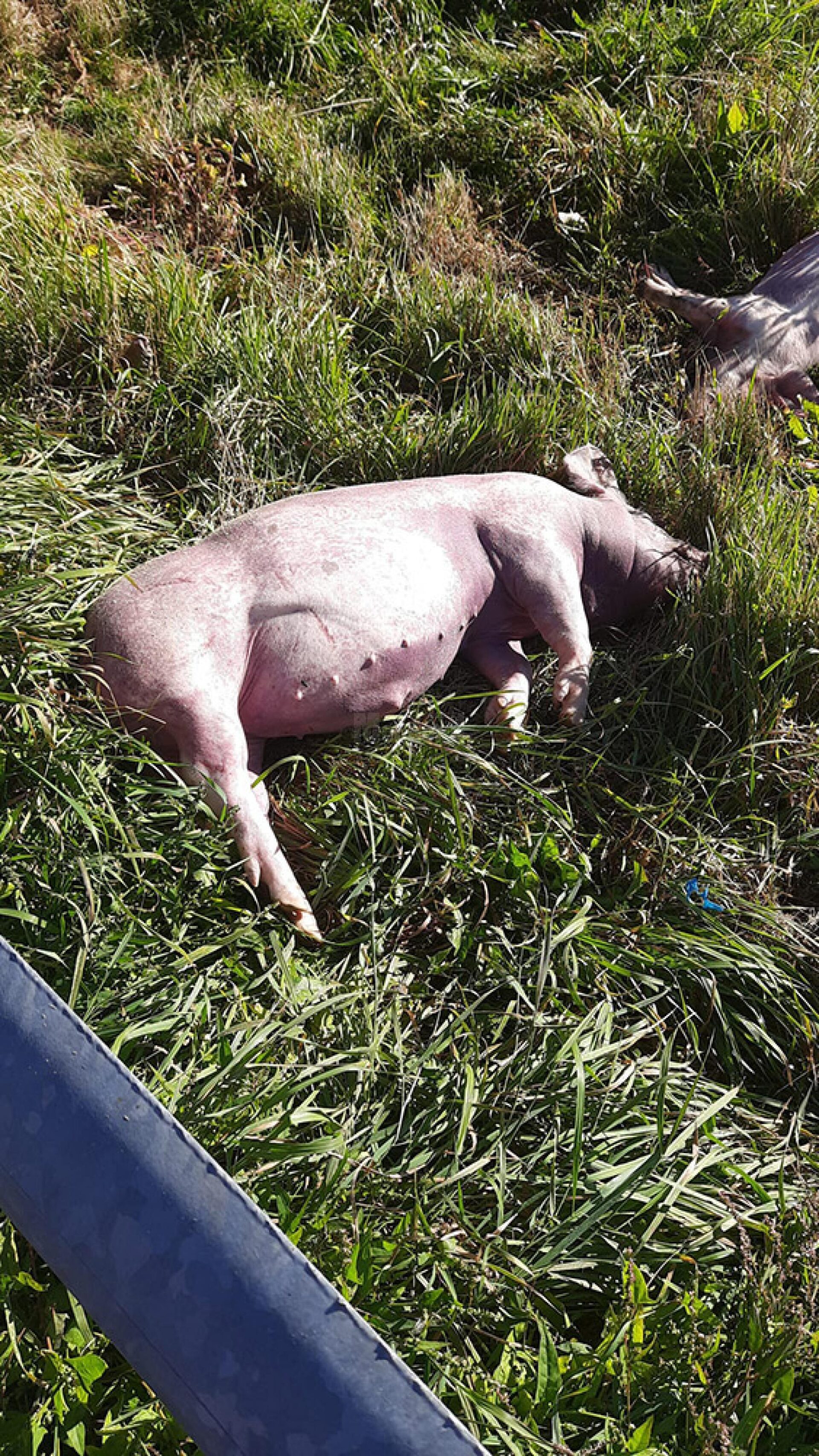 „Din fericire, am răsuflat ușurați, probele la cei doi porci, unul de aproximativ 65 de kilograme și unul de 35-30 de kilograme, au ieșit negative. Examinarea și locul unde au fost găsiți sunt elemente care ne fac să credem că au murit sufocați, în timp ce erau transportați cu o mașină în condiții improprii. Porcii nu aveau crotalii, nu erau identificați, deci în mod cert vorbim de un transport clandestin, care oricum este un real pericol în această perioadă”, a declarat Sorin Mihai Voloșeniuc.