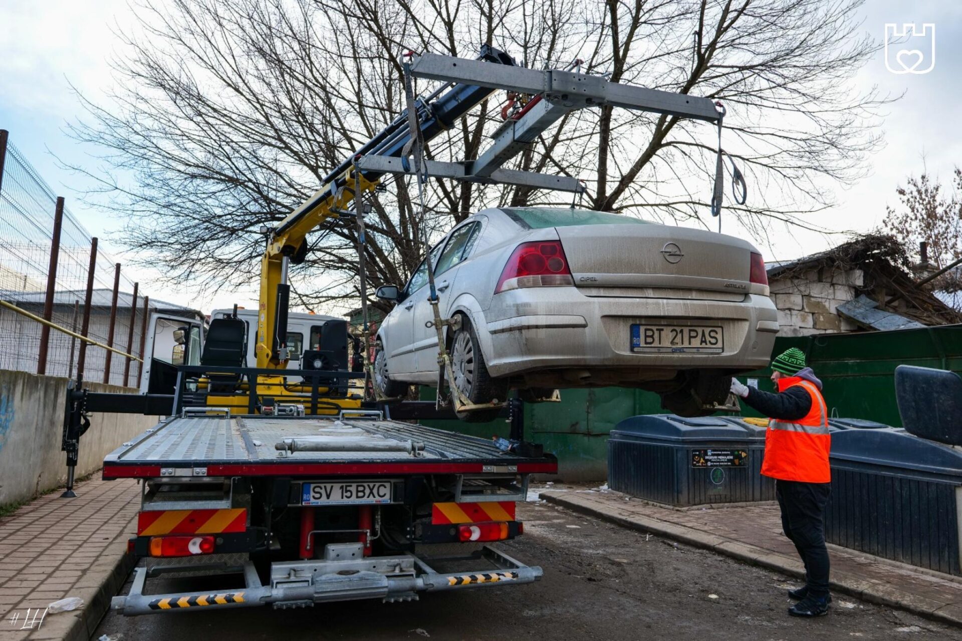 „Tot mai multe mașini blochează punctele de colectare a deșeurilor. Iar de curând, o altă mașină a fost ridicată de către colegii de la Poliția Locală, de la unul dintre punctele de colectare.
