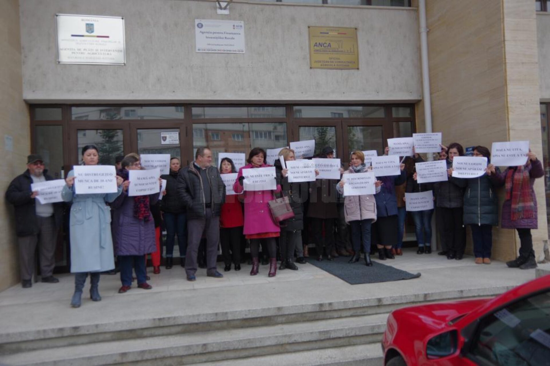 Angajații Agenției de Plăți și Intervenții în Agricultură (APIA) Suceava continuă protestele, o parte dintre angajații de la Suceava manifestându-și nemulțumirea în fața sediului APIA din Suceava, în timp ce o altă delegație a plecat spre Capitală, unde este programat, tot miercuri, un miting de mari proporții.