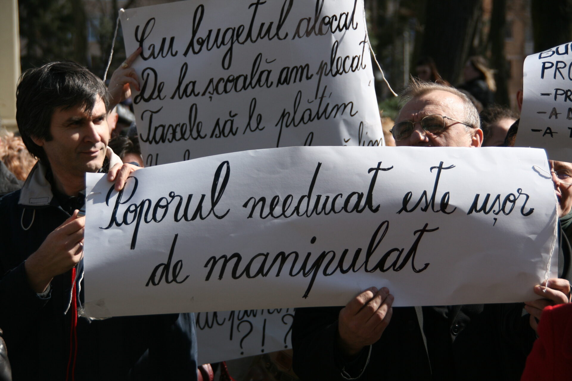 „Sindicatele din educație își exprimă astfel dezacordul față de măsurile guvernamentale de diminuare a deficitului bugetar, aplicate în sistemul de învățământ.