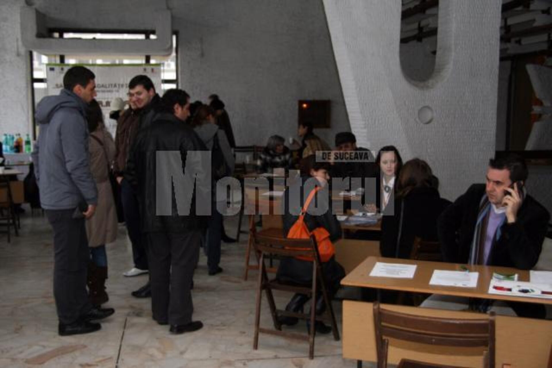 Holul Casei de Cultură Suceava a găzduit, ieri, un târg de locuri de muncă, 25 de angajatori punând la dispoziția șomerilor în jur de o sută de posturi.