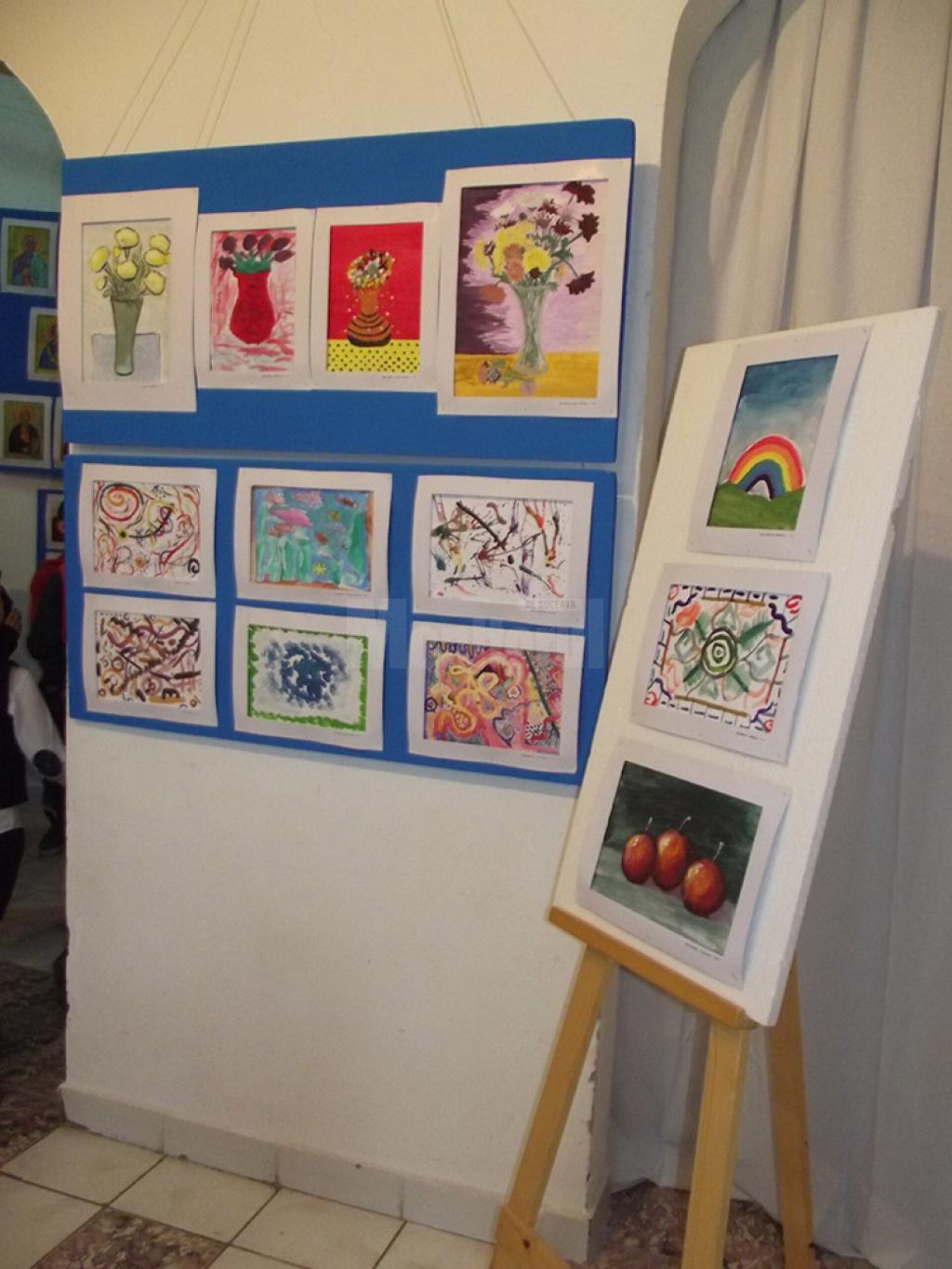 Expoziția reunește circa 200 de lucrări, realizate de 150 de elevi
