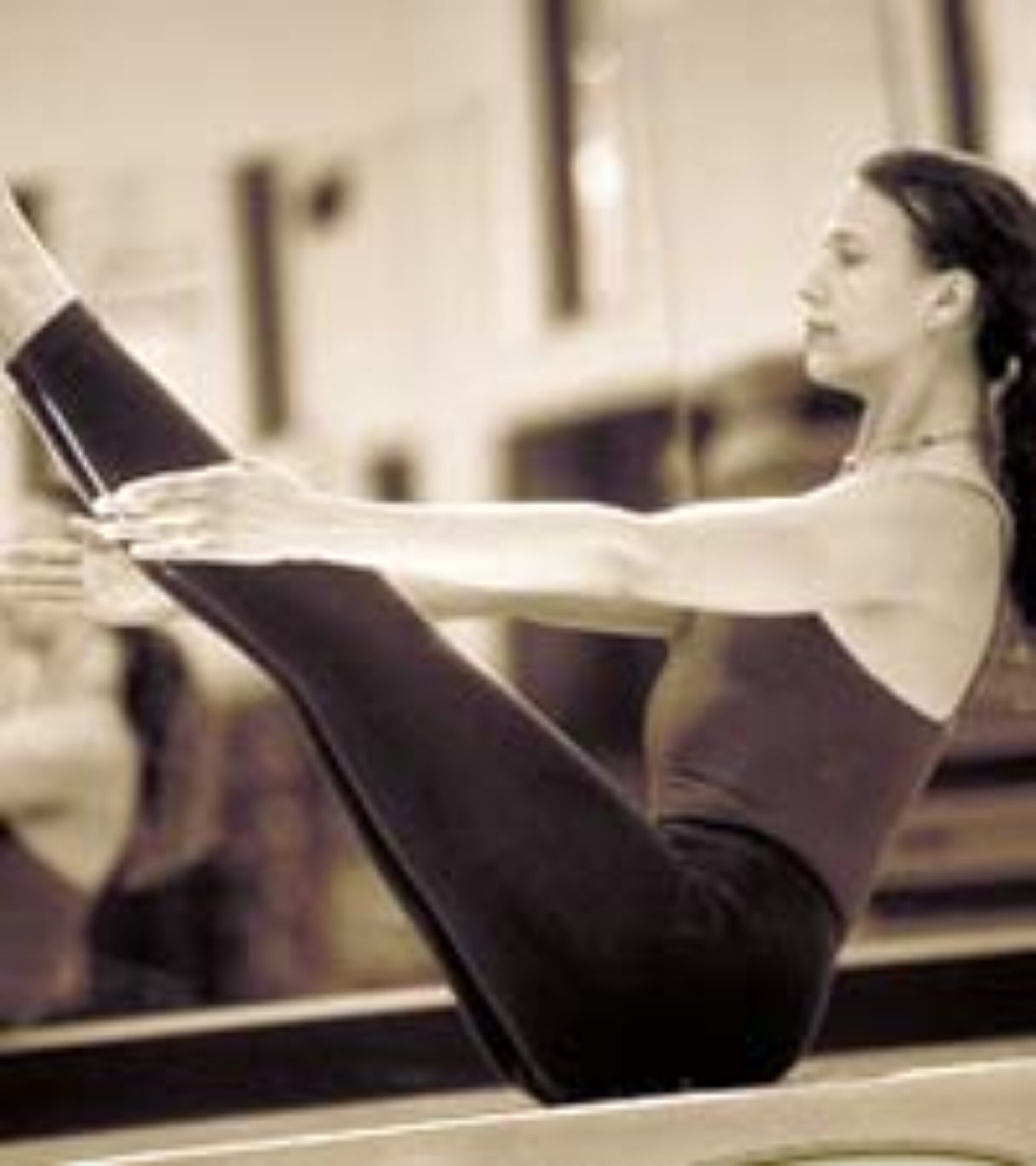 Revino la poziția inițială și repetă mișcarea atingând cotul și genunchiul opus.