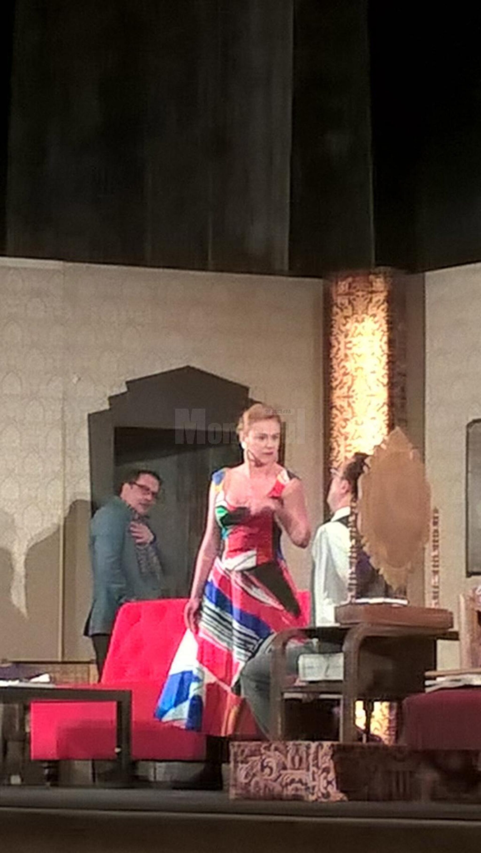 „Panică la Operă”, de Ken Ludwig, are loc în anul 1934, într-un apartament de hotel din Cleveland. Directorul Operei, Saunders, rol interpretat de regizorul spectacolului, Răzvan Săvescu, reușește, după lungi negocieri, să îl convingă pe faimosul tenor Tito Merelli, numit și Il Stupendo, să vină în Cleveland pentru a-l interpreta într-o unică reprezentație pe Othello. Ceea ce trebuia să fie o seară extraordinară se transformă în coșmar în momentul în care celebrul tenor ia o doză dublă de sedative și își pierde cunoștința. Într-o încercare disperată de a salva seara, Saunders îl convinge pe asistentul său, Max, care de mult cocheta cu ideea de a urca pe scenă, să îmbrace costumul lui Othello și să se dea drept marele tenor. Max reușește admirabil în farsa sa, dar, în timpul spectacolului, Tito își revine și îmbracă costumul de rezervă, pregătit să își susțină recitalul. Confuzia generală creată de cei doi Othello transformă seara într-un festin de comedie, multe momente amuzante, replici spumoase care au făcut publicul să râdă cu poftă.