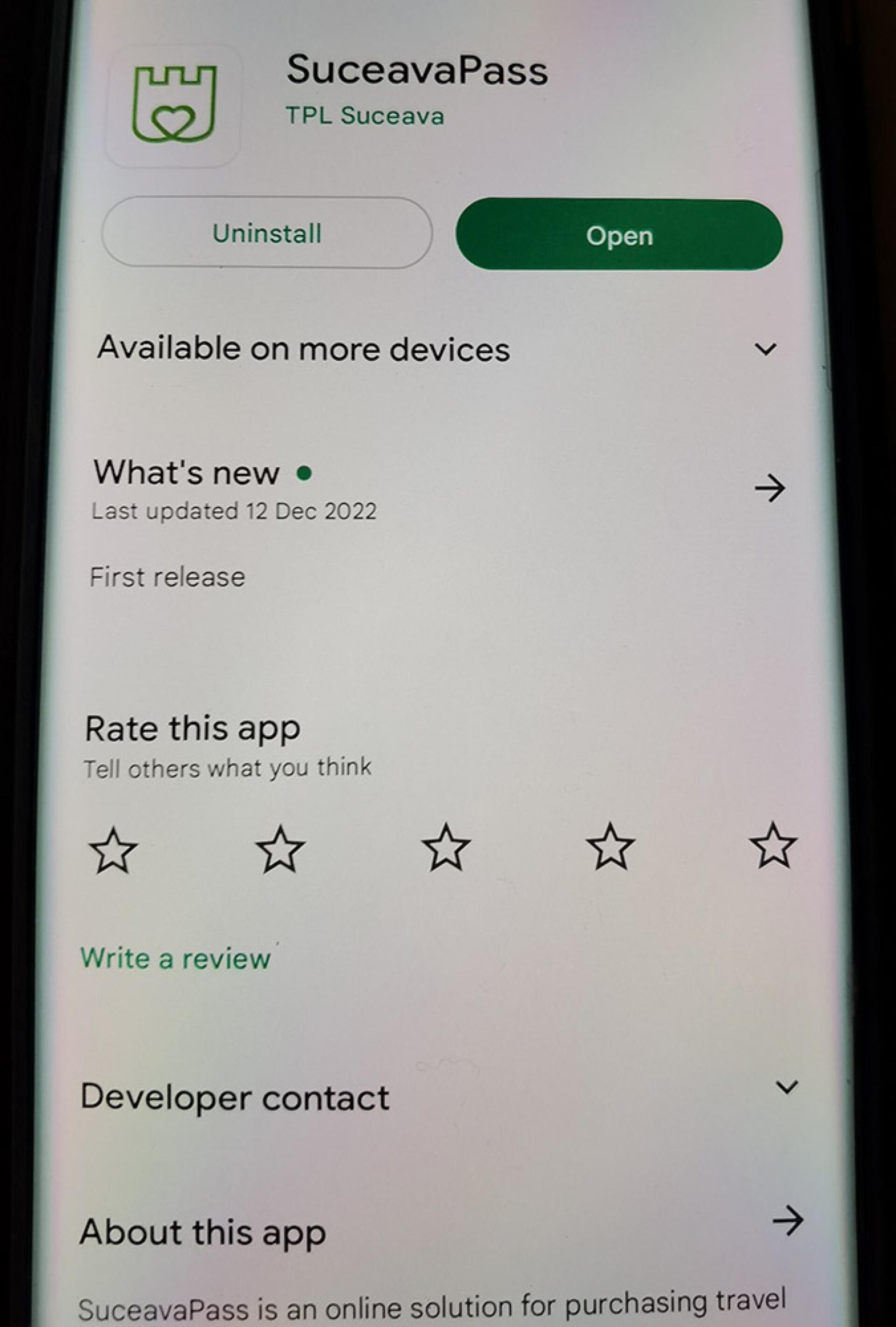 Sucevenii pot folosi această aplicație, disponibilă gratuit, după ce își fac cont, iar de acolo pot achiziționa titlurile de călătorie – atât bilete, cât și abonamente.