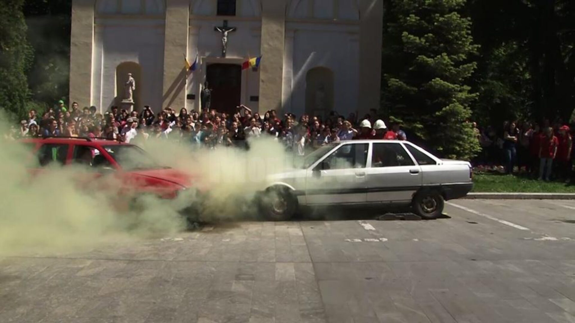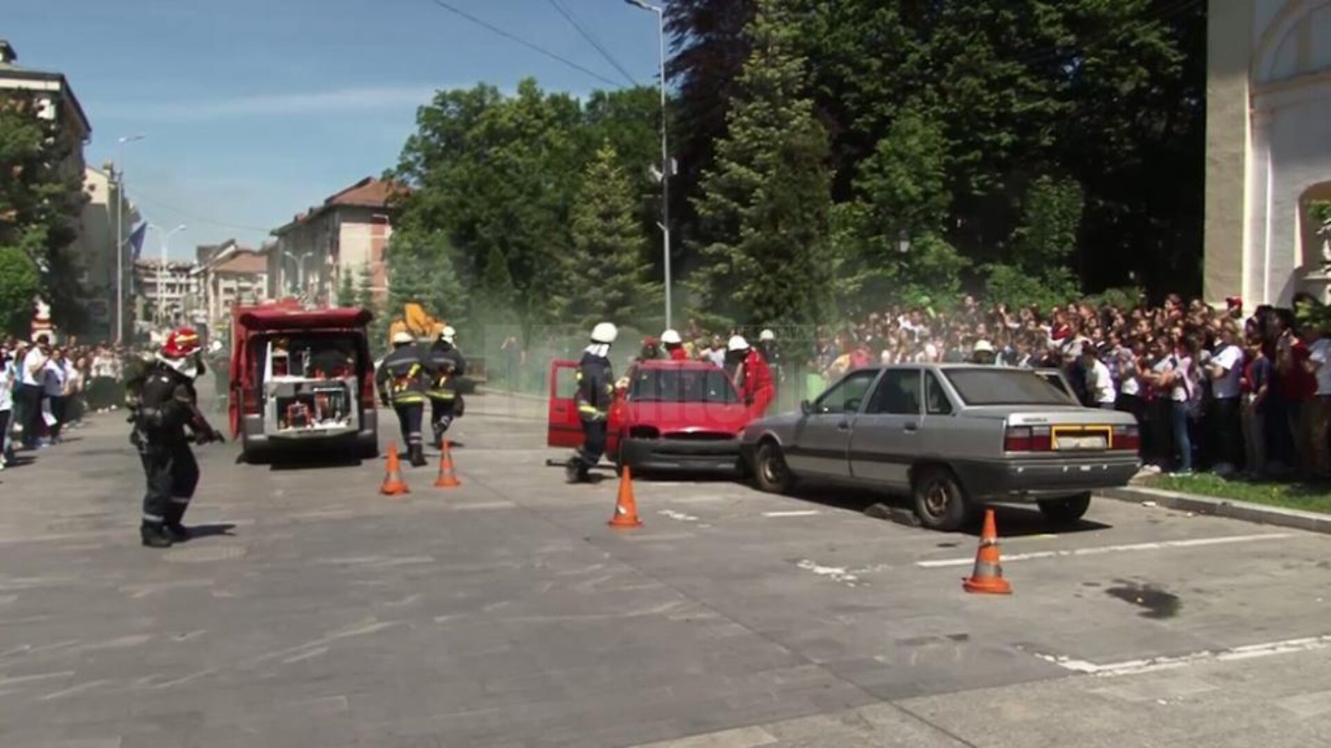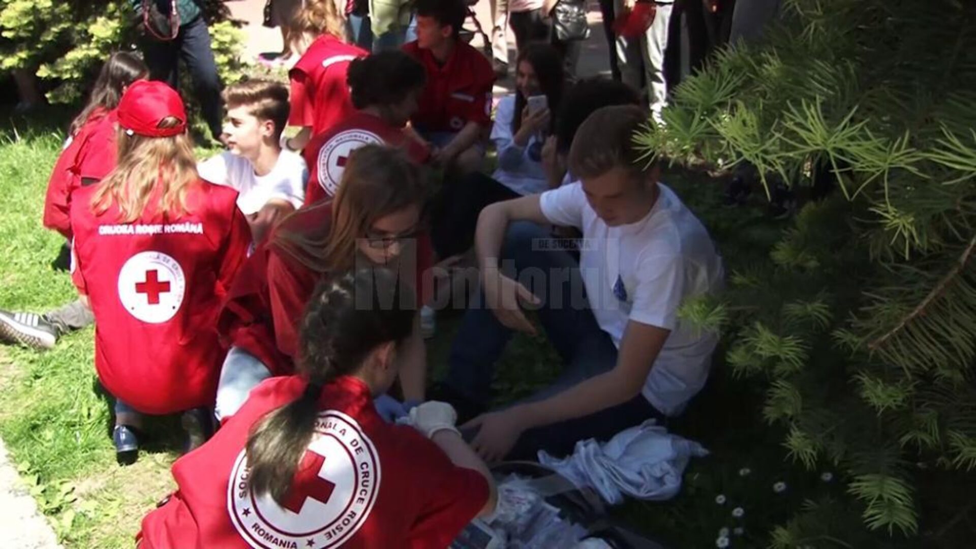 În cadrul acțiunii de vineri a avut loc, la întoarcerea de la marșul desfășurat pe străzile Sucevei, și simularea unui accident rutier cu intervenția efectivelor de la Inspectoratul pentru Situații de Urgență (ISU) Suceava și cu participarea voluntarilor Societății Crucea Roșie Suceava.